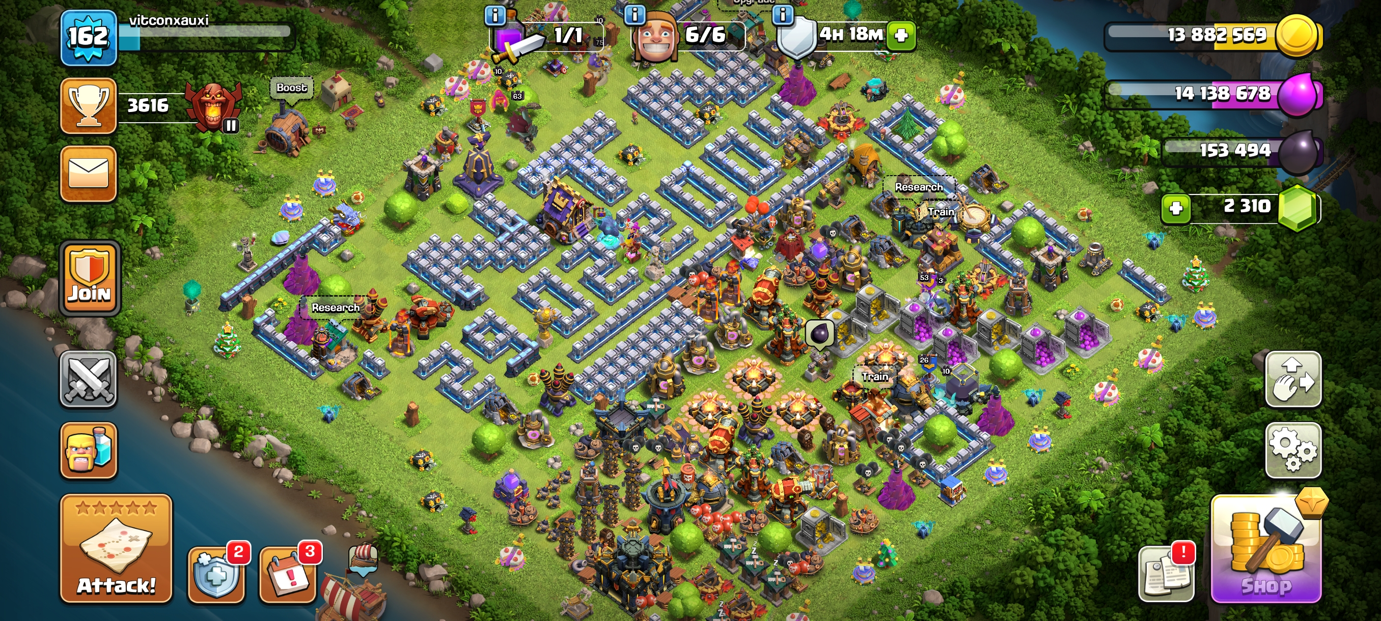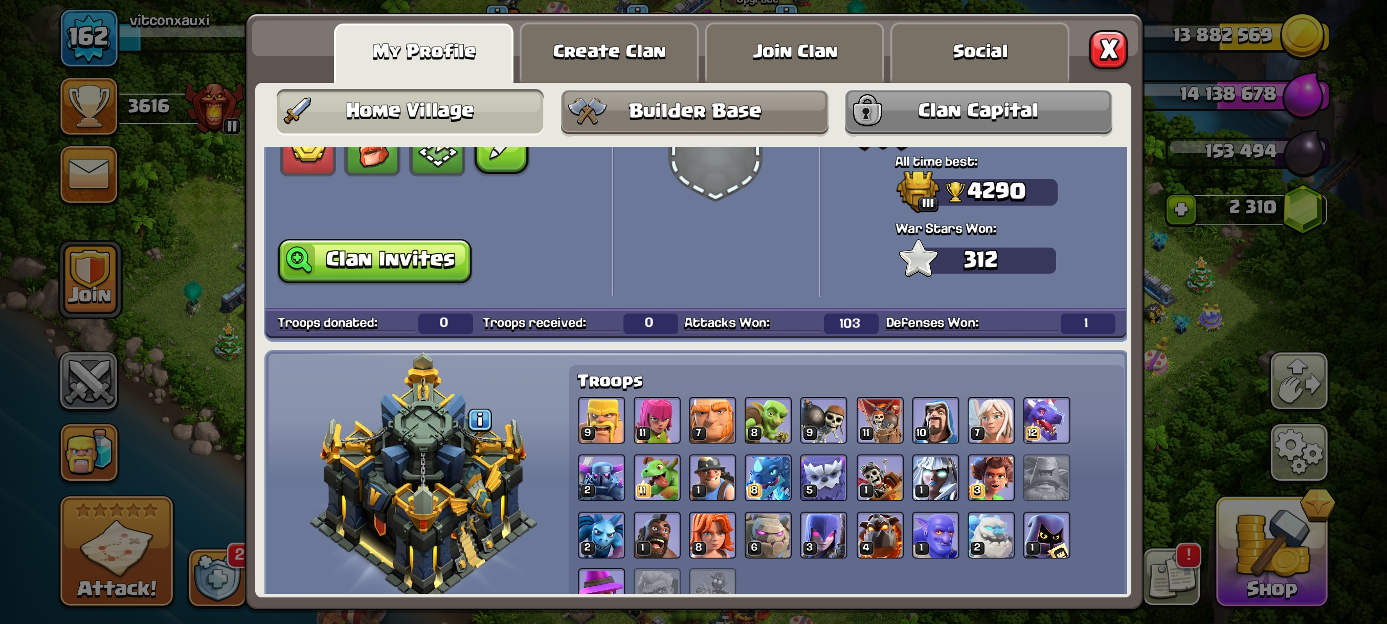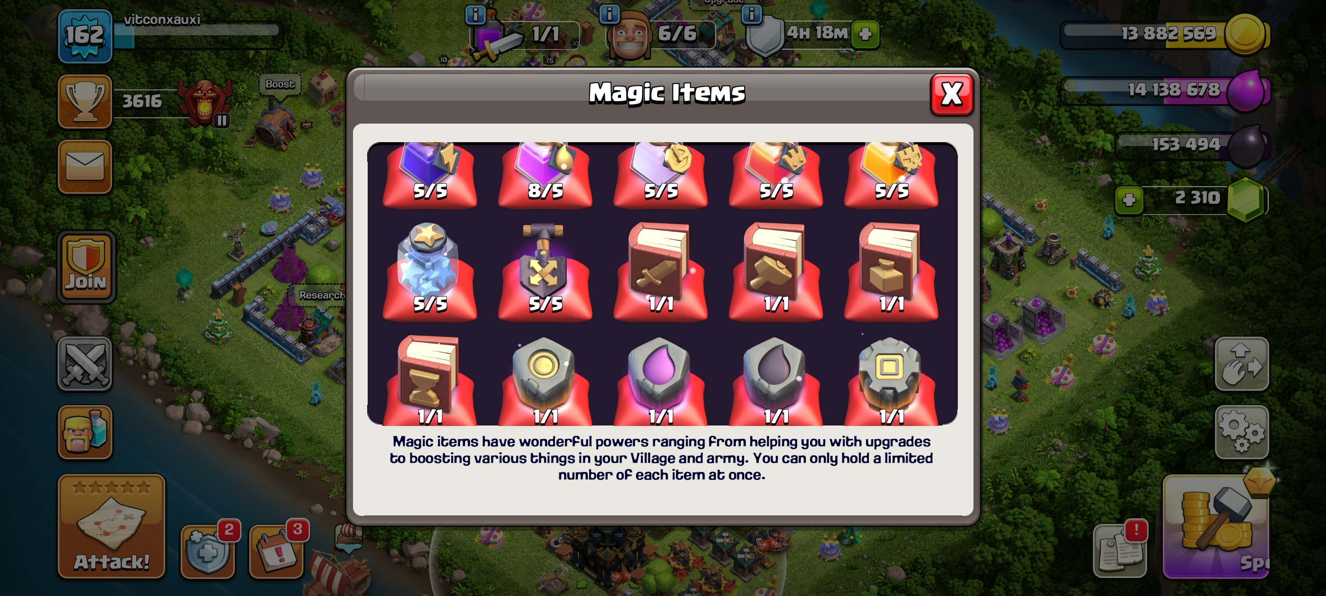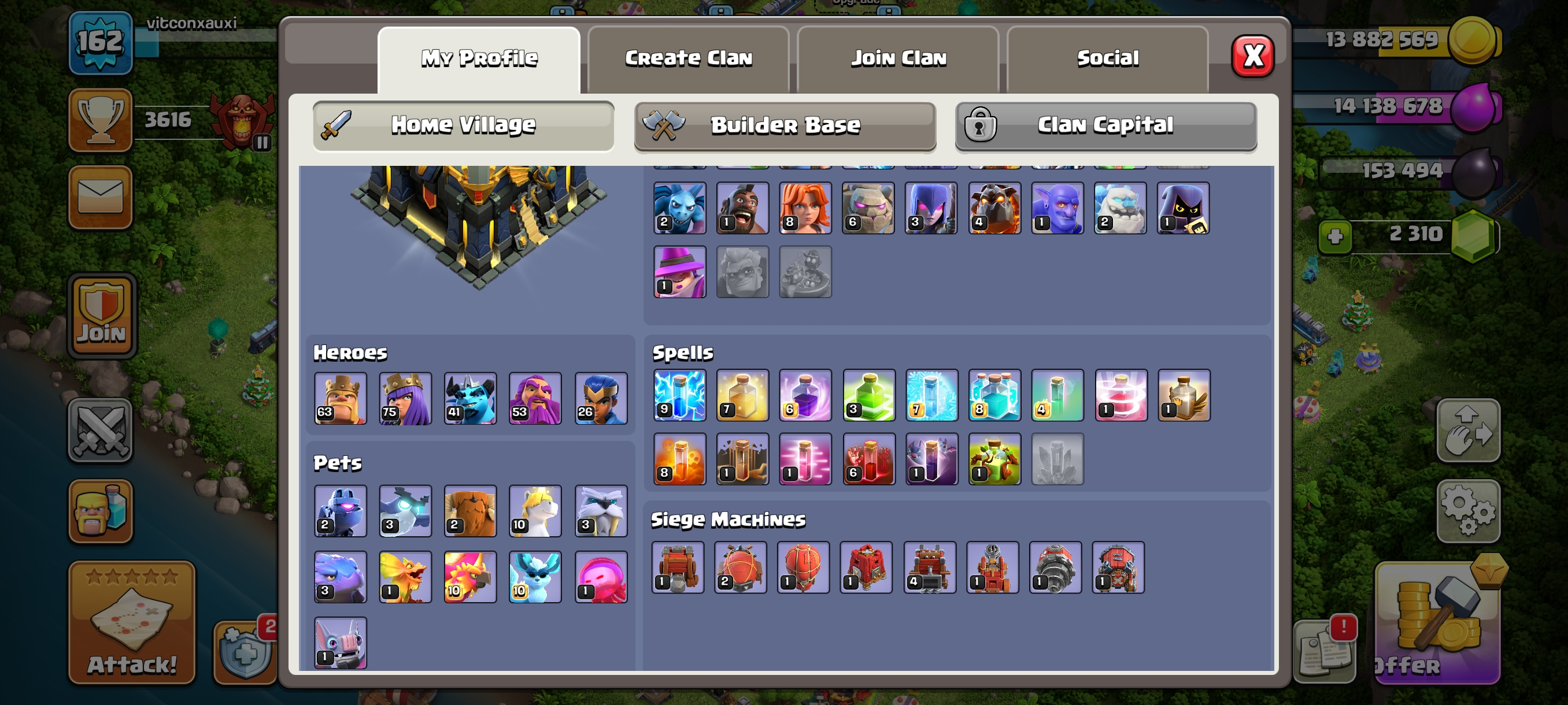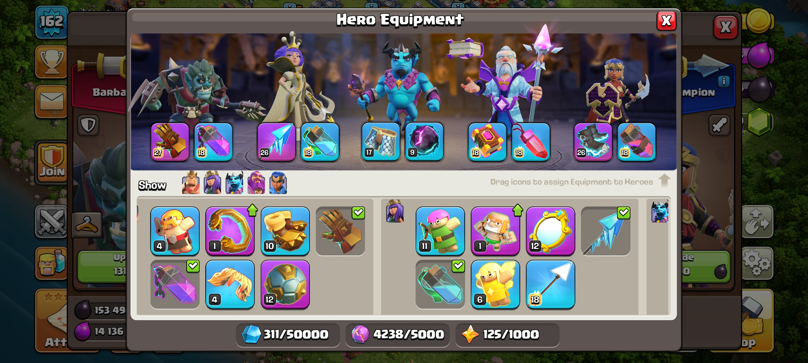 Premium 10X Epics Giant Gauntlet-Frozen Arrow-Electro Boots-League Warden-Th17-Xp162-Hero 63-75-41-53-26-2300 Gems-867 Madel-9 Skin