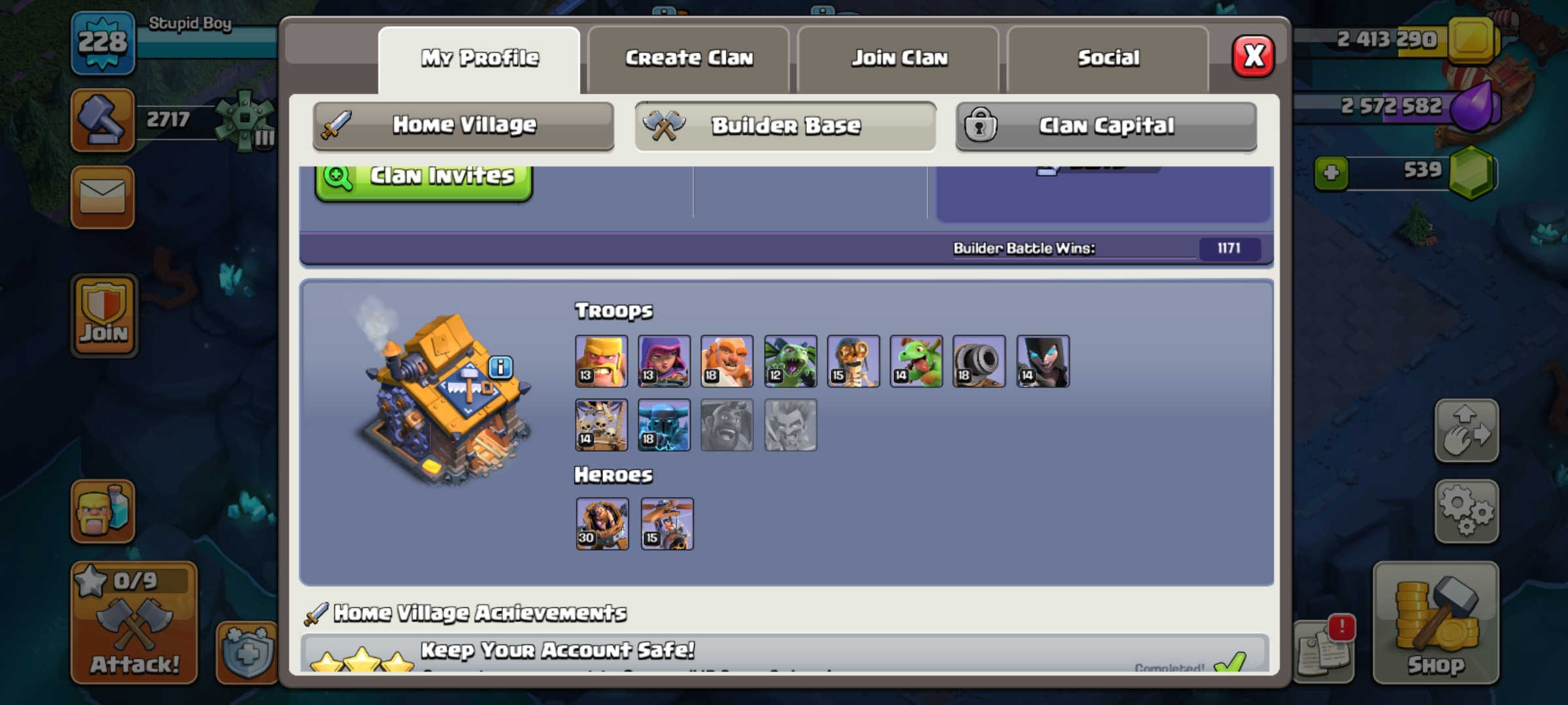 Rare all epic with 3500+war star -228 xp-15 near maxed account -81-90-63-63-36 heroes-all defence troops near maxed-super fast delivery