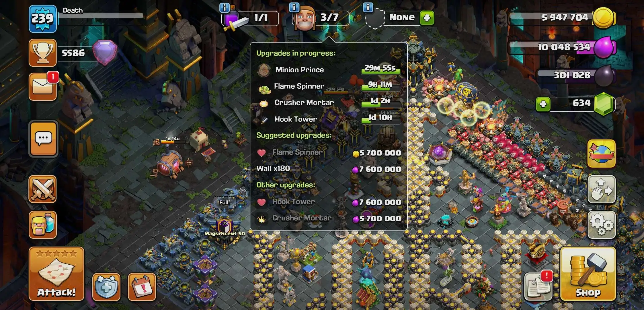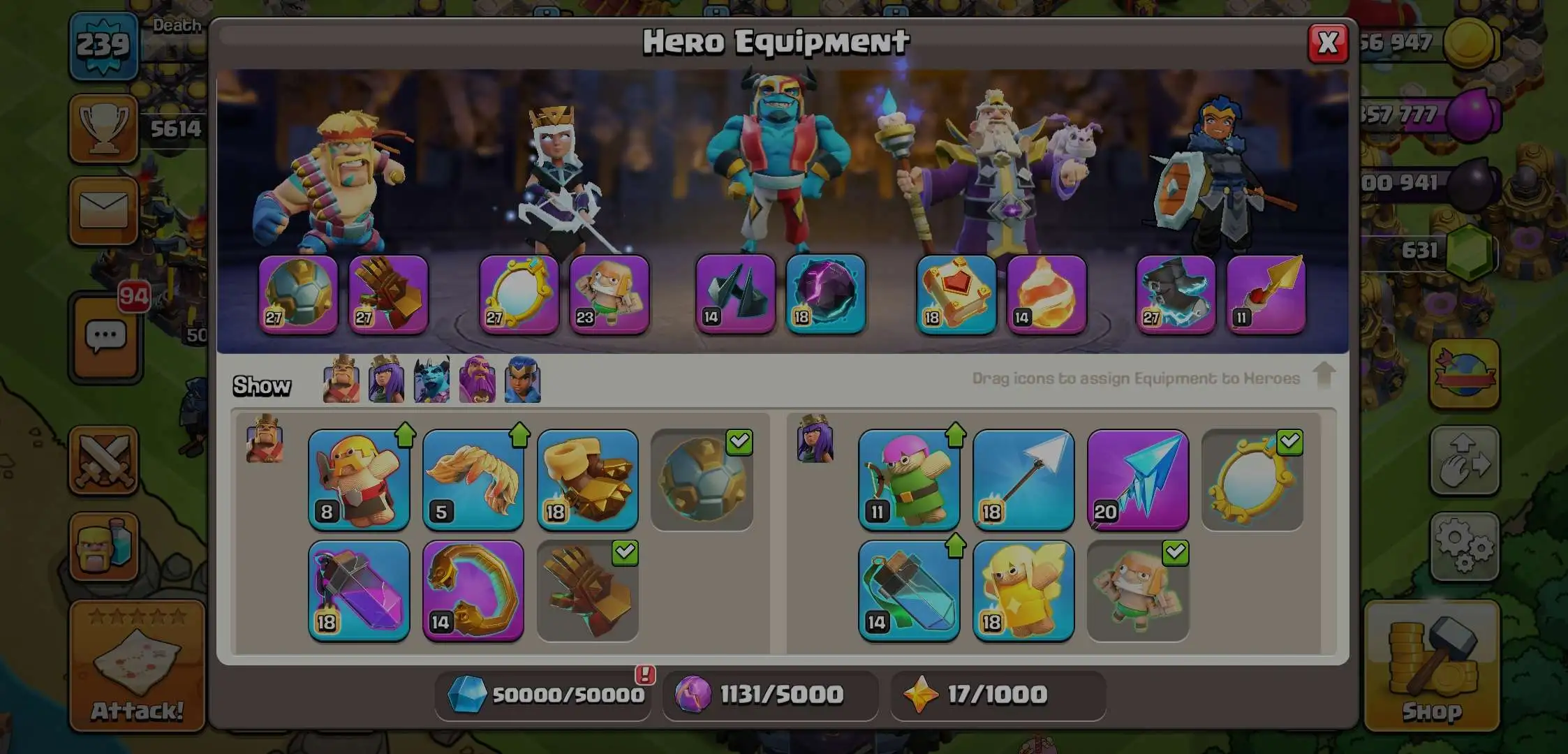 🧿 RARE + CHEAPEST 🧿 99% MAXED TH17 💎 •🌟 LAB MAXED 🌟•🔥 BASE MAXED WITH SUPERCHARGERD 🔥• ✨ALMOST ALL EQUIPMENTS MAXED✨ • 2 APPRENTICE MAXED 💘•💎 20+ HEROES SKINS AND GHOST SCENERY💎 • 500 GEMS NC ONLY ✅ co43