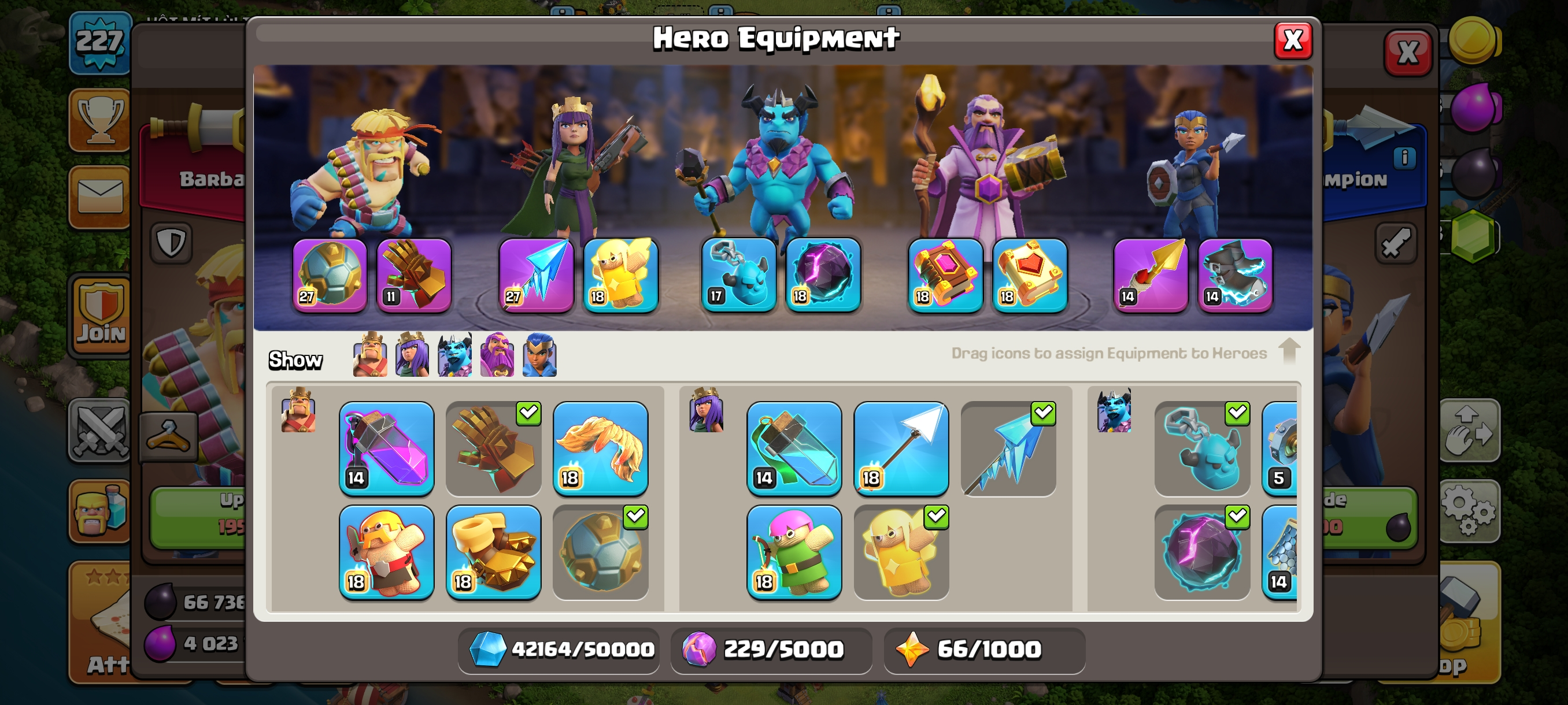 Rare Giant Gauntlet-Frozen Arrow 17 Equipment Max-Th17 World Best Account-Hero 77-85-56-65-44-Xp227- Profile Defense Max-Builder Hall Max