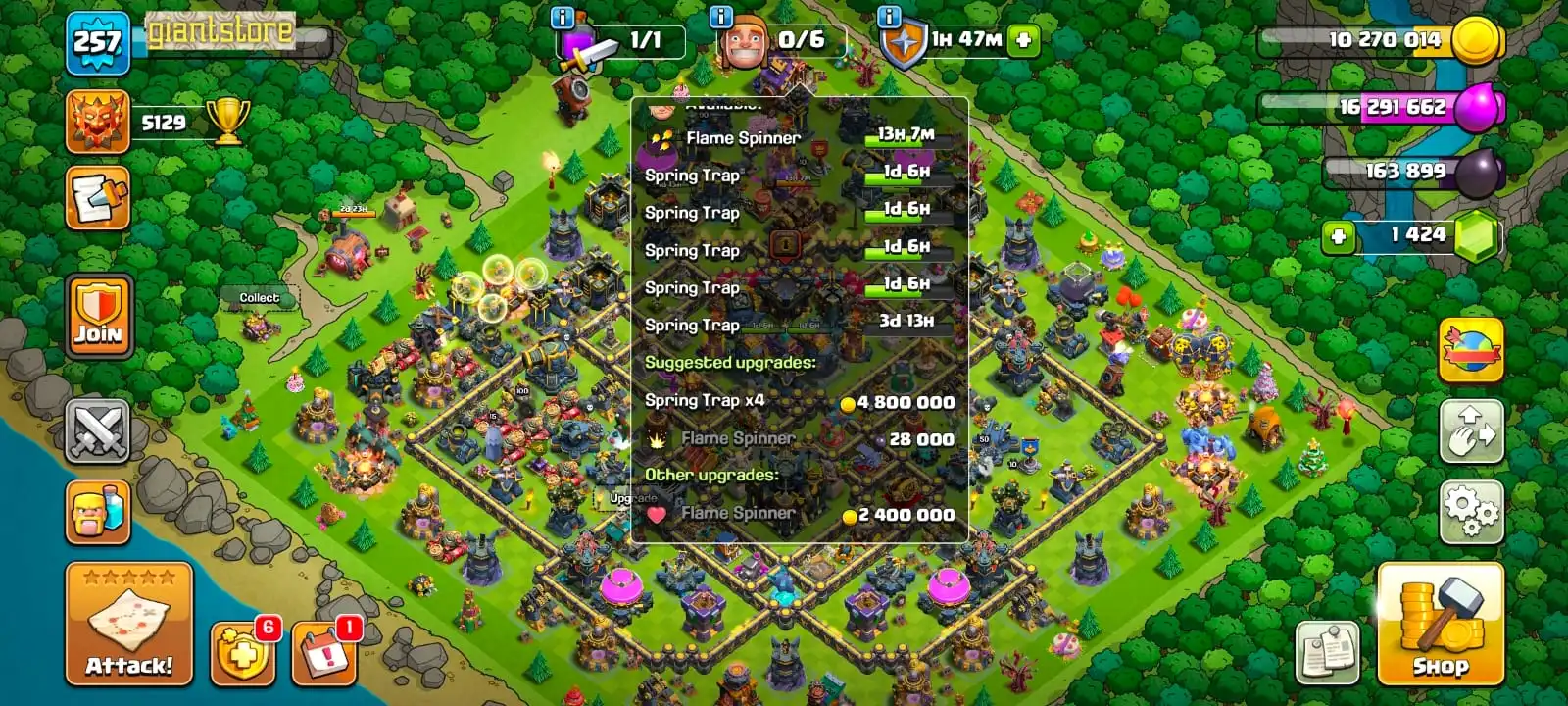 RARE🔥 TH 17 ALL MAX ☠️6 max epic equipment🔥max heroes🔥max pets🔥max troops⚒️max builder base⚡️all supercharge✅cn on