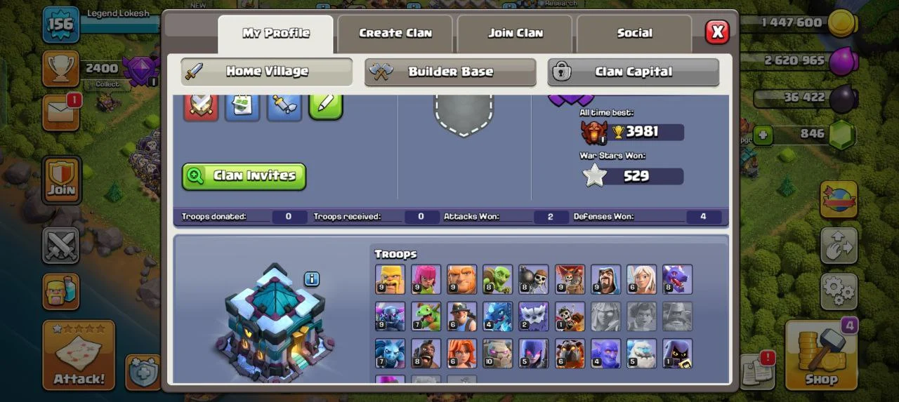 🎉 STACKED ☃️ 💥 TH13 WHITE & BLUE WALLS 🎉 | 🎊 GOOD LEVEL EQUIPMENTS 🎊 | 🏆 3981 ATB 🤯 | 🔥NC:-500 GEMS 🎫 TH 13 🌟🔥HEROES 56-57-42-46-13 😈 ⭐ 529 WAR STARS ✨ BUILDER HALL 10 🔥 ✅ INSTANT DELIVERY 🚚
