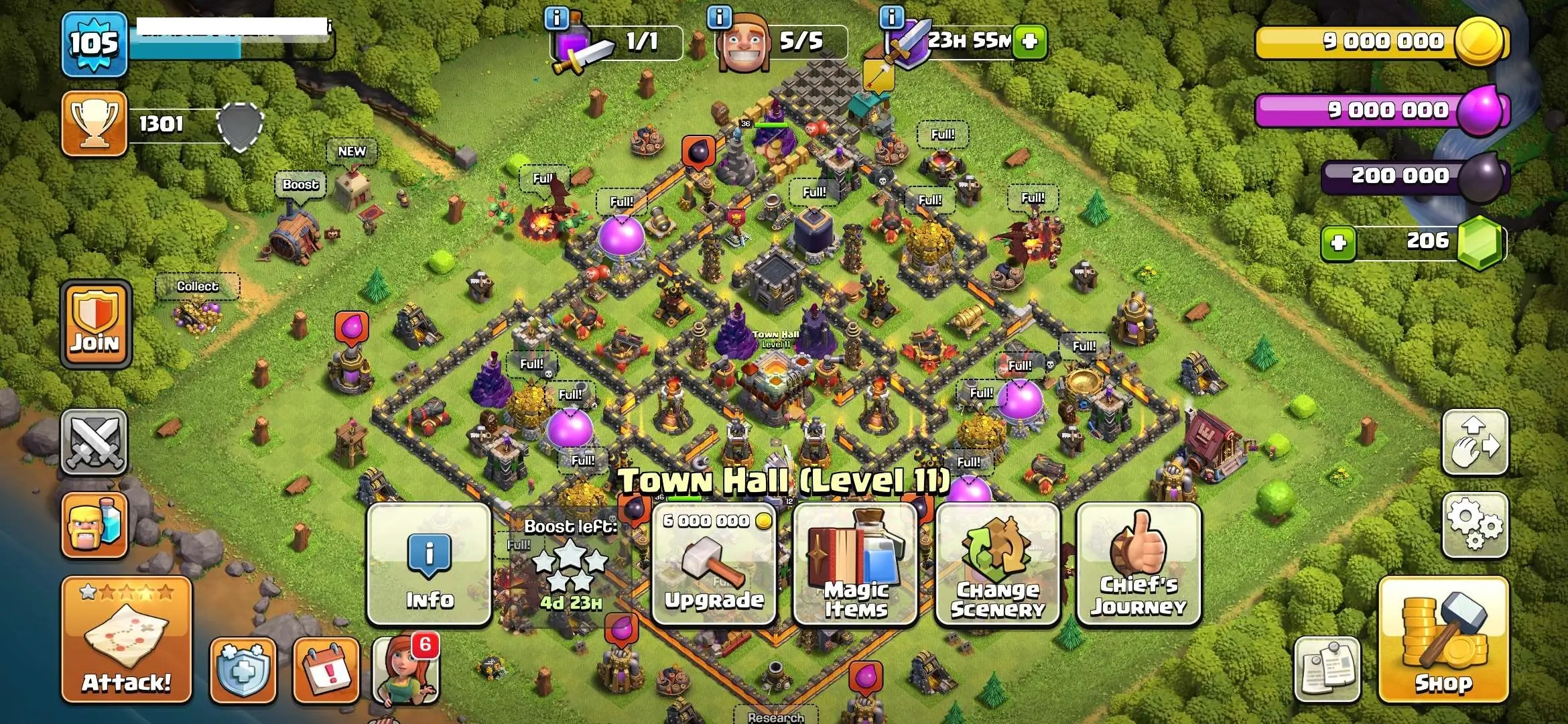 [TH 11 ⸱ 105 EXP ⸱ 5 Builders] [1301 Trophies ⸱ CHEAPEST ⸱ FAST DELIVERY]