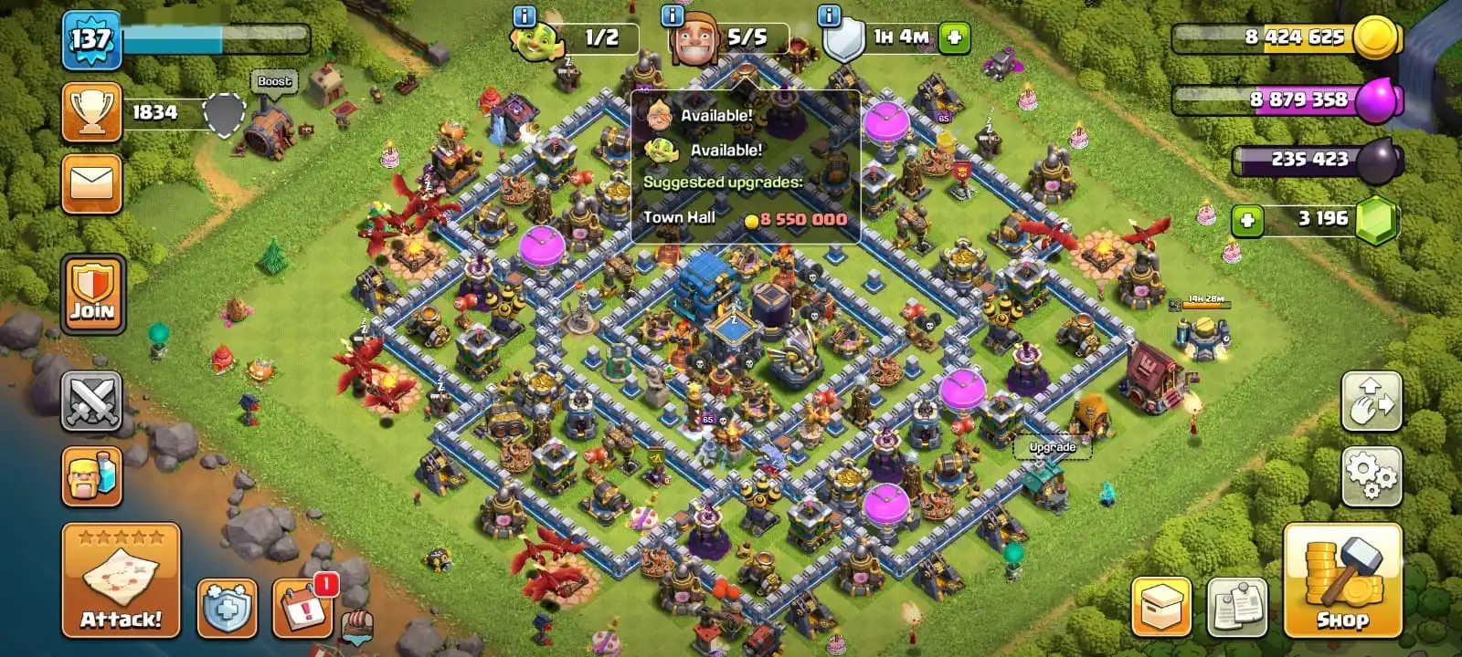 TH 12 FULL MAX🔥GEMS 3196🔥HEROES MAX 65-65-40-40 SPIKY BALL & FROZEN ARROW ON🔥CLASH A RAMA SCENERY🔥MAGIC ITEMS READY🔥FULL ACCESS & GUARANTEED🔥