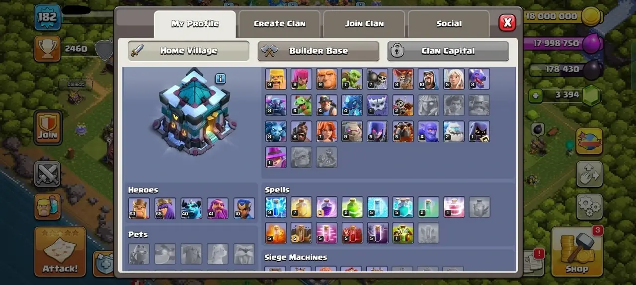 🏯 TH 13 🎇 LEVEL 182 🛡️ BK 63 👑 AC 65 👺 MP 40 🪄 GW 41 🥋 RC 10 🎗️ TROPHIES 2460 ⚡ INSTANT DELIVERY 🎯 COCN9104