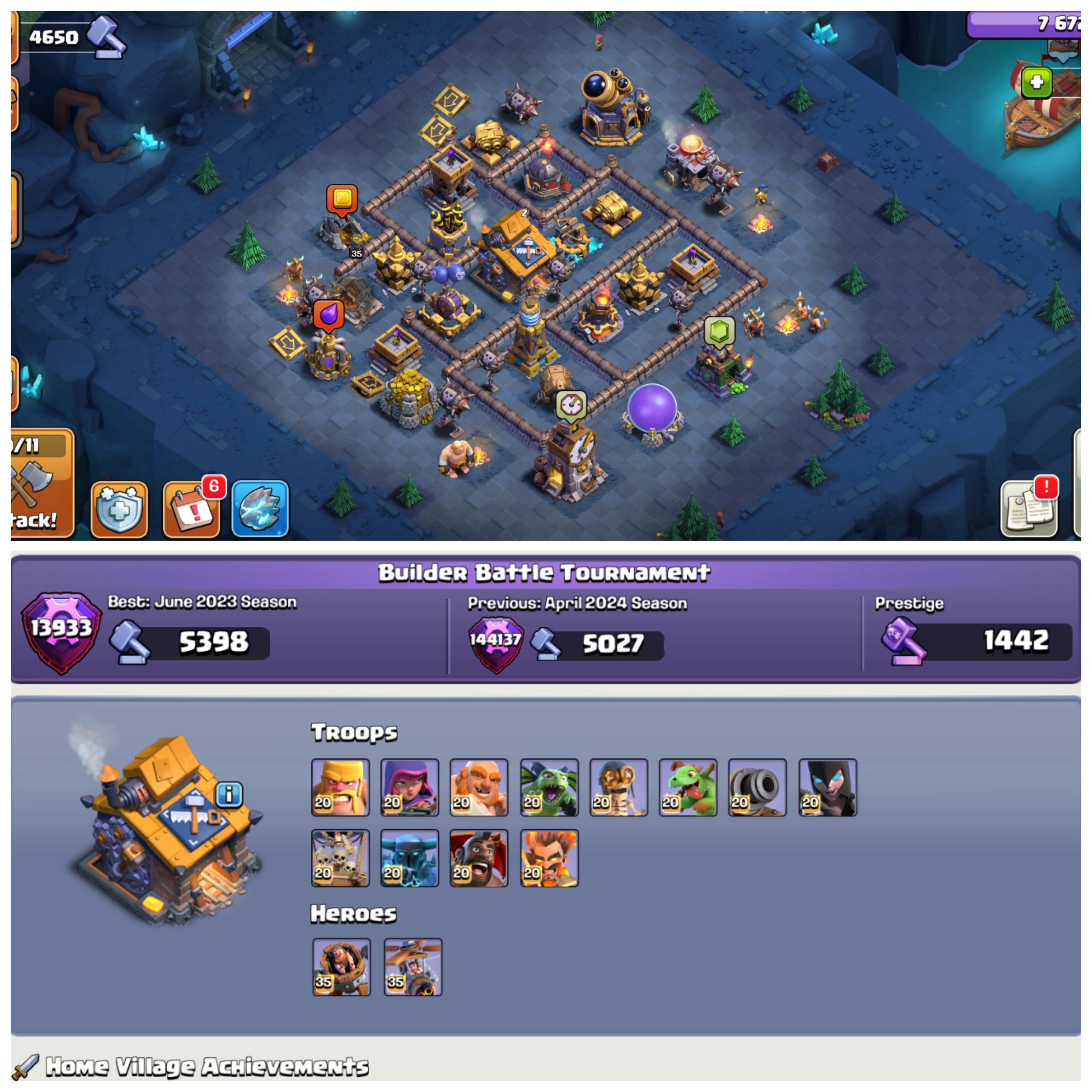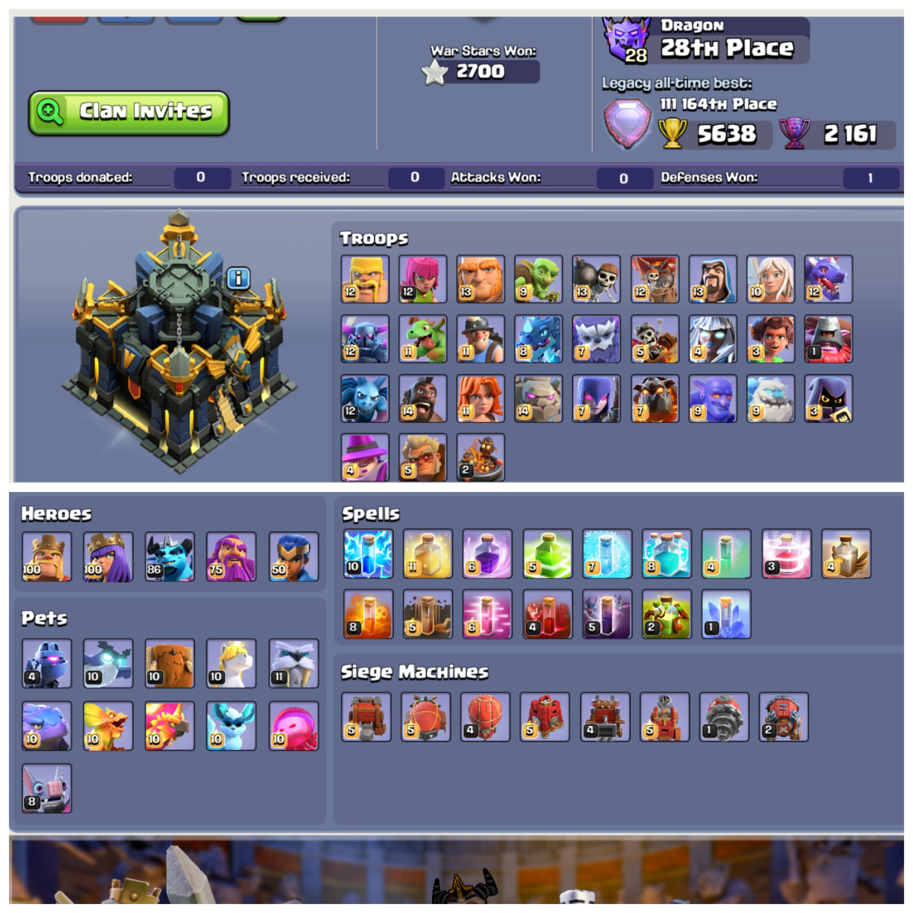 👑 TH 17 95% Maxed Out 🧠 XP 254 🎭 11 Heroes Skins 🧩 9 Epic Equipments 🛠️ 17 Max Equipments 💪 Max Troops 🏗️ Full Max BuilderHall ⚡ Instant Delivery