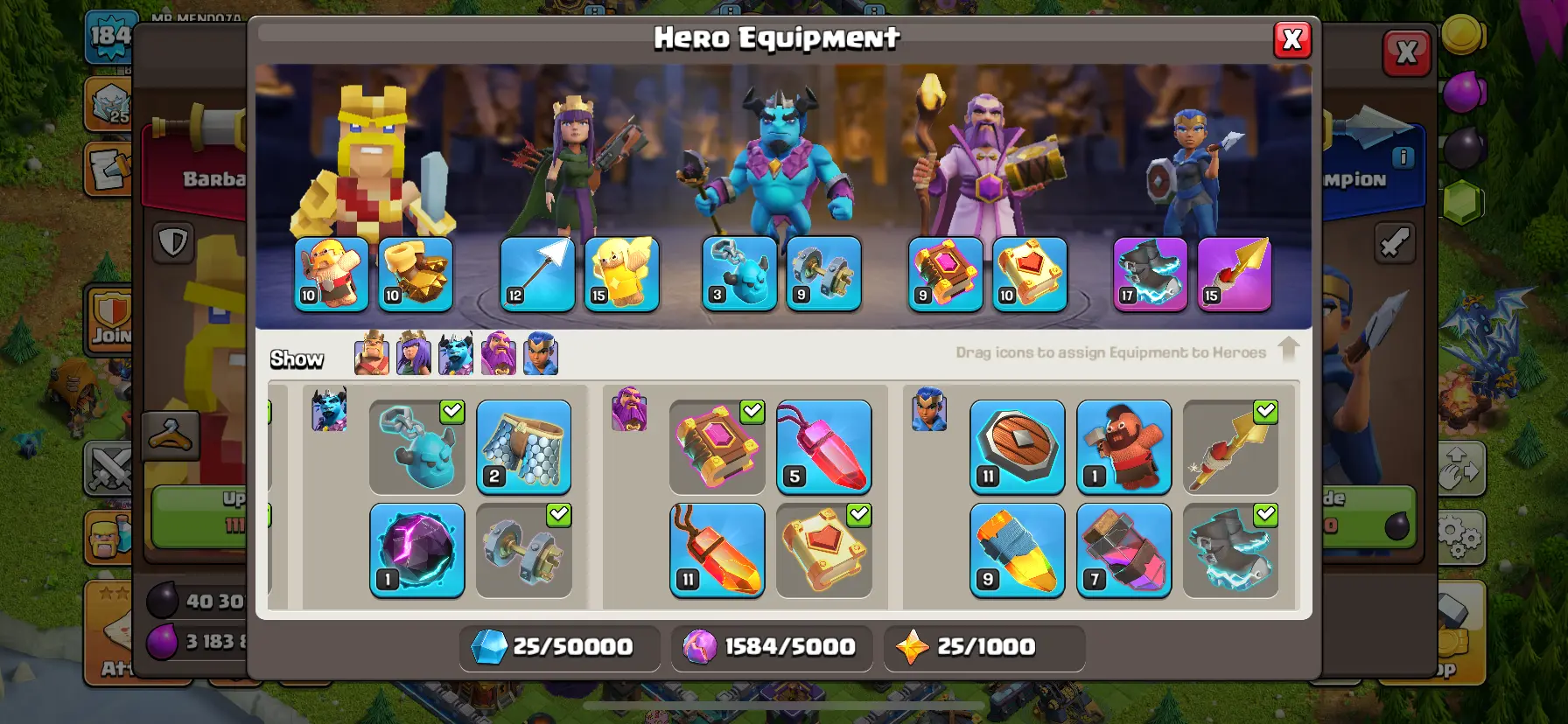 TH 17 DONATION CLAN 🔥 GEMS 2.800 CN 500 🔥 EQUIPMENT EPIC ON🔥 HEROES LEVEL 62-70-40-47-28🔥 INSTAN DELEVERY 💯