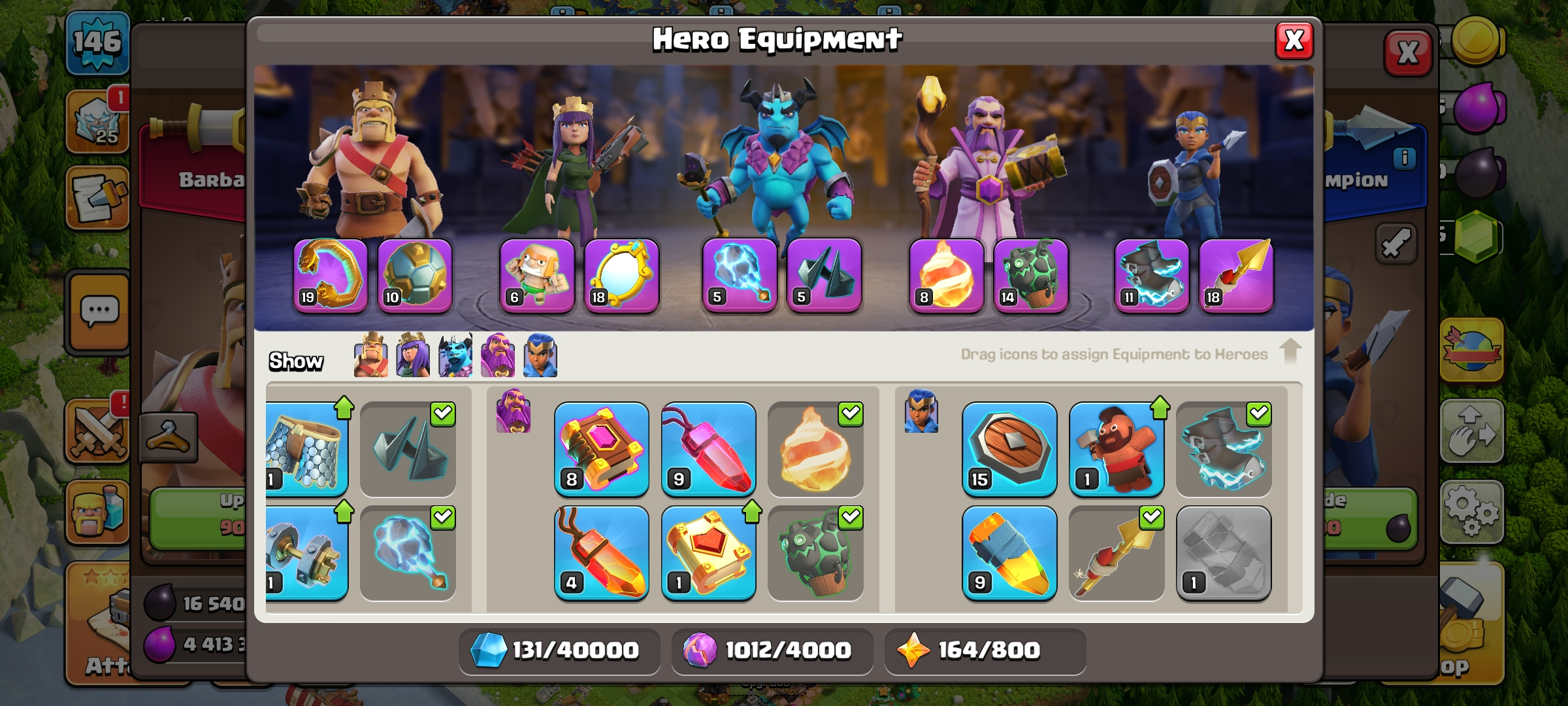 TH 17 RARE~HERO EQUIPMENT EPIC FULL~HERO BIG AND TALL- XP 146 /BK 54-/AQ 83/PM 40/GW 23-/RJ 27-/LOG SUPERCELL ID-/Andoid and ios|SCREENSHOTS ON DESCRIPTION