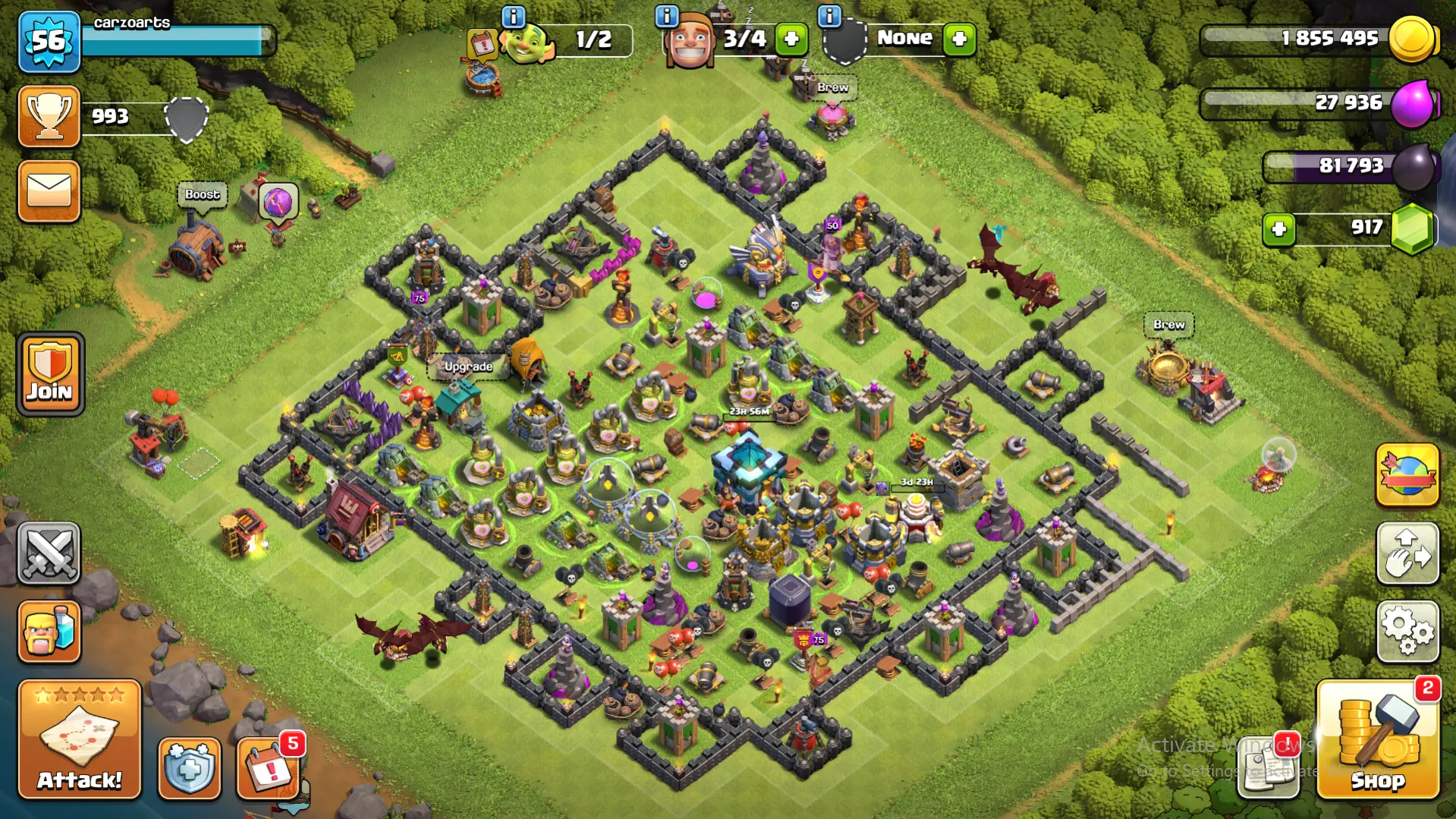 TOWNHALL 14 | 917 GEMS | 1953146 GOLD | 27936 ELIXIR | 793 DARK ELIXIR | LVL 56 | BARBARIAN KING LEVEL : 28 | ARCHER QUEEN LEVEL : 28 | WARDEN LEVEL : 20 | MINION PRINCE LEVEL : 22 | CHECK DESCRIPTION