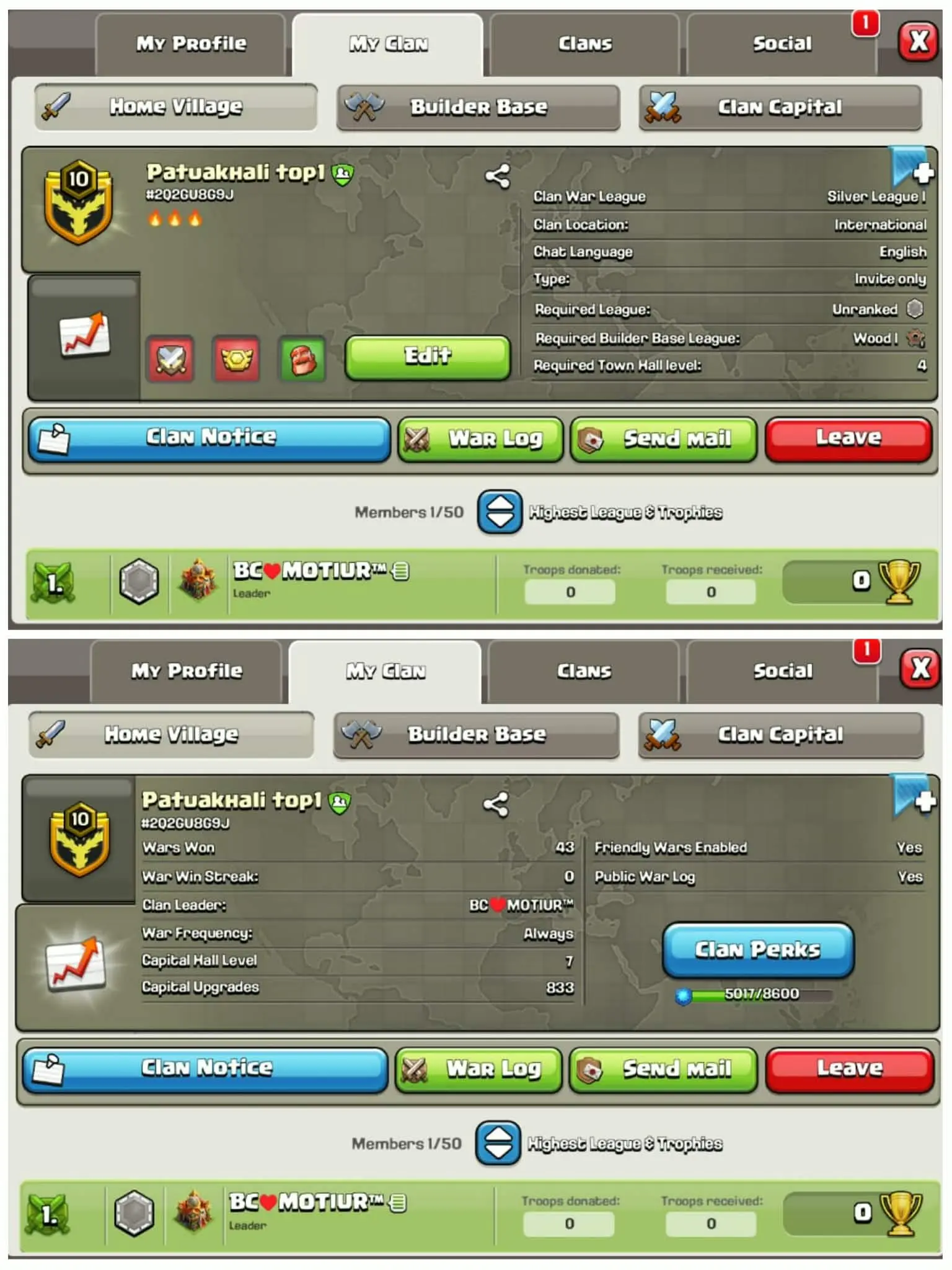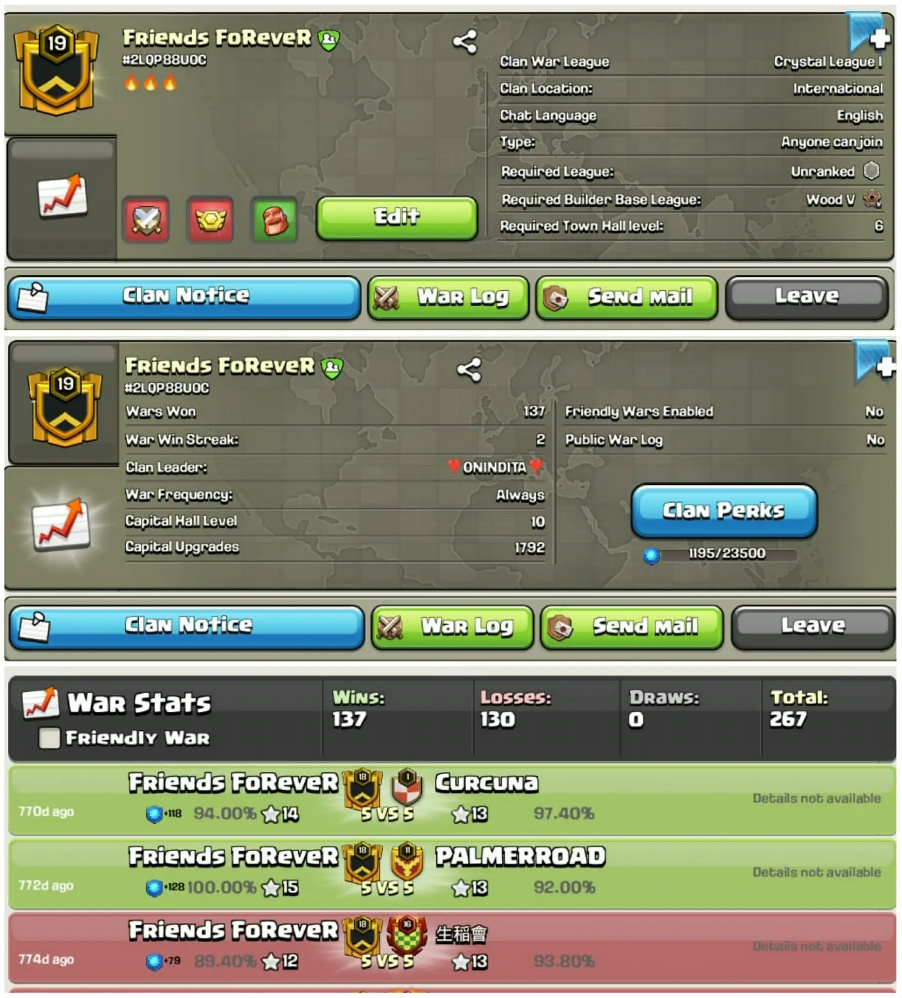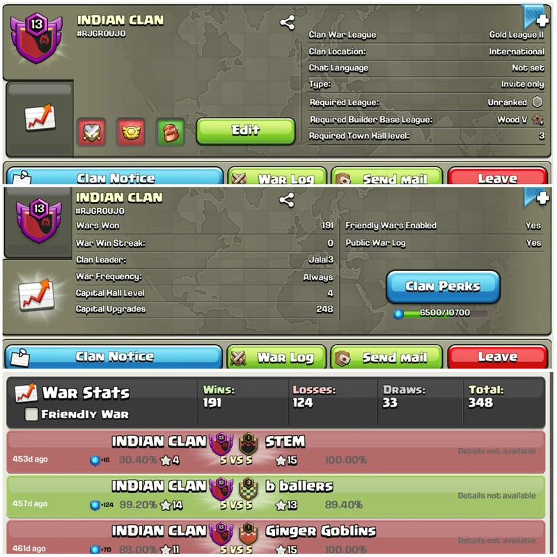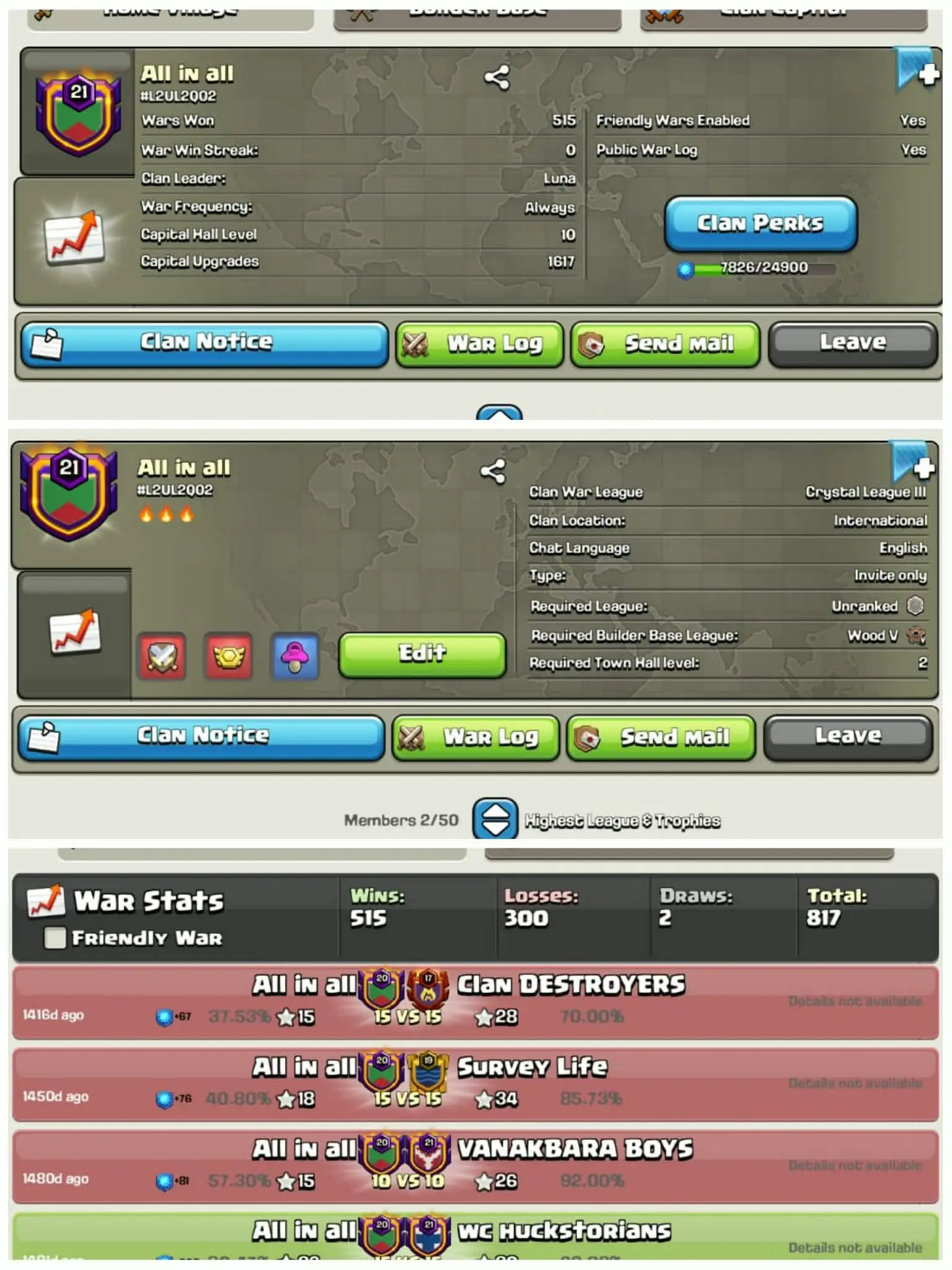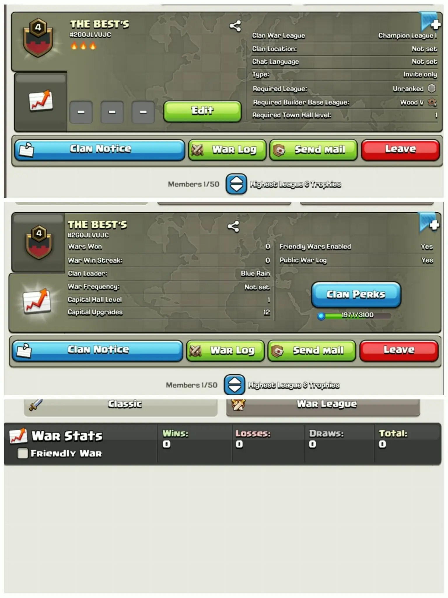 Champion League 1➤➤15 War Win 9 Loss➤➤Level-10