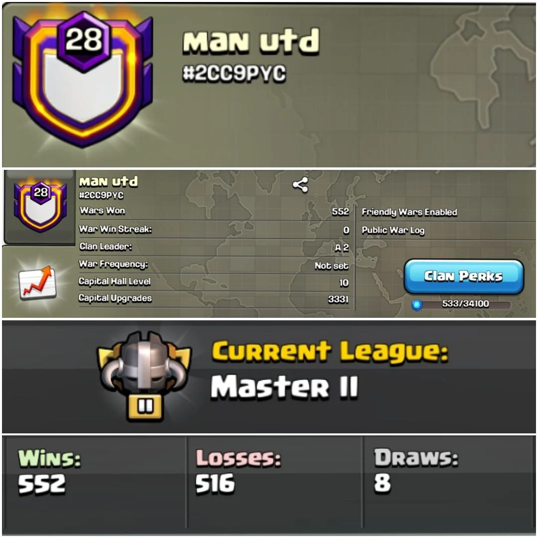 Level 28 | Name - Man Utd | Clan Capital 10 | Master League | Awesome Warlog | Fast Delivery