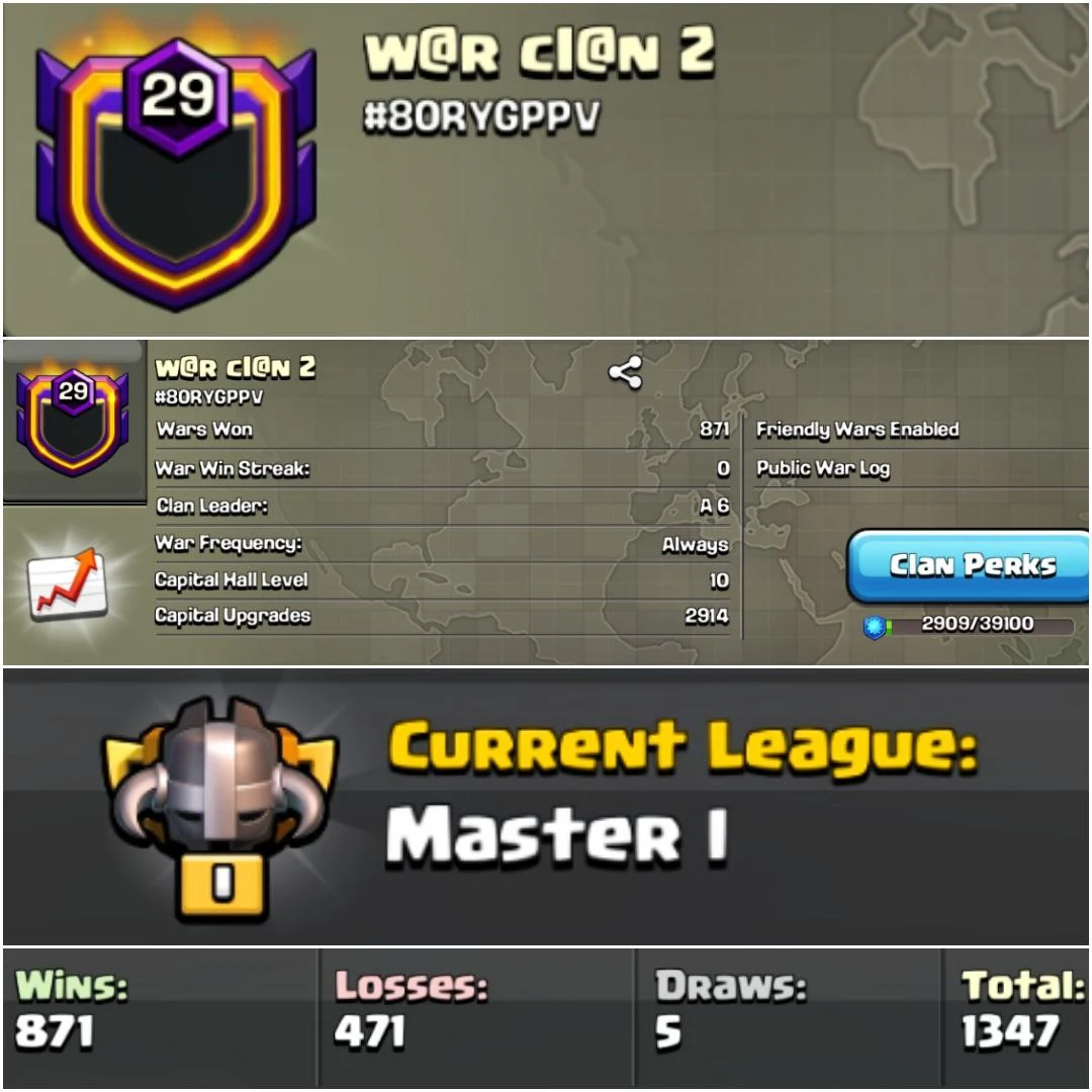 Level 29 | Name - War Clan | Clan Capital -10 | Master League | Awesome Warlog | Fast Delivery