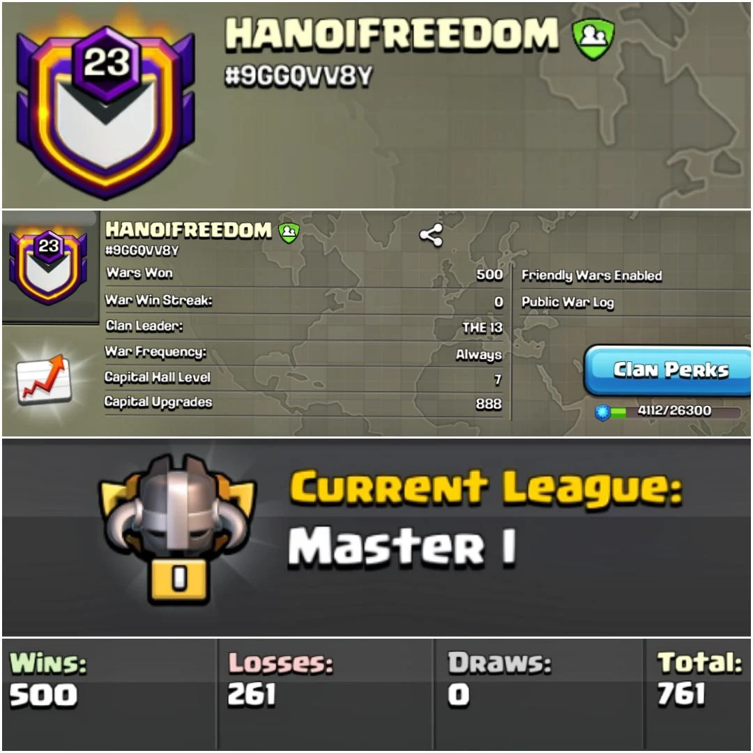 Level 23 | Name - HAN0IFREEDOM | Clan Capital - 7 | Master League | Awesome Warlog | Fast Delivery