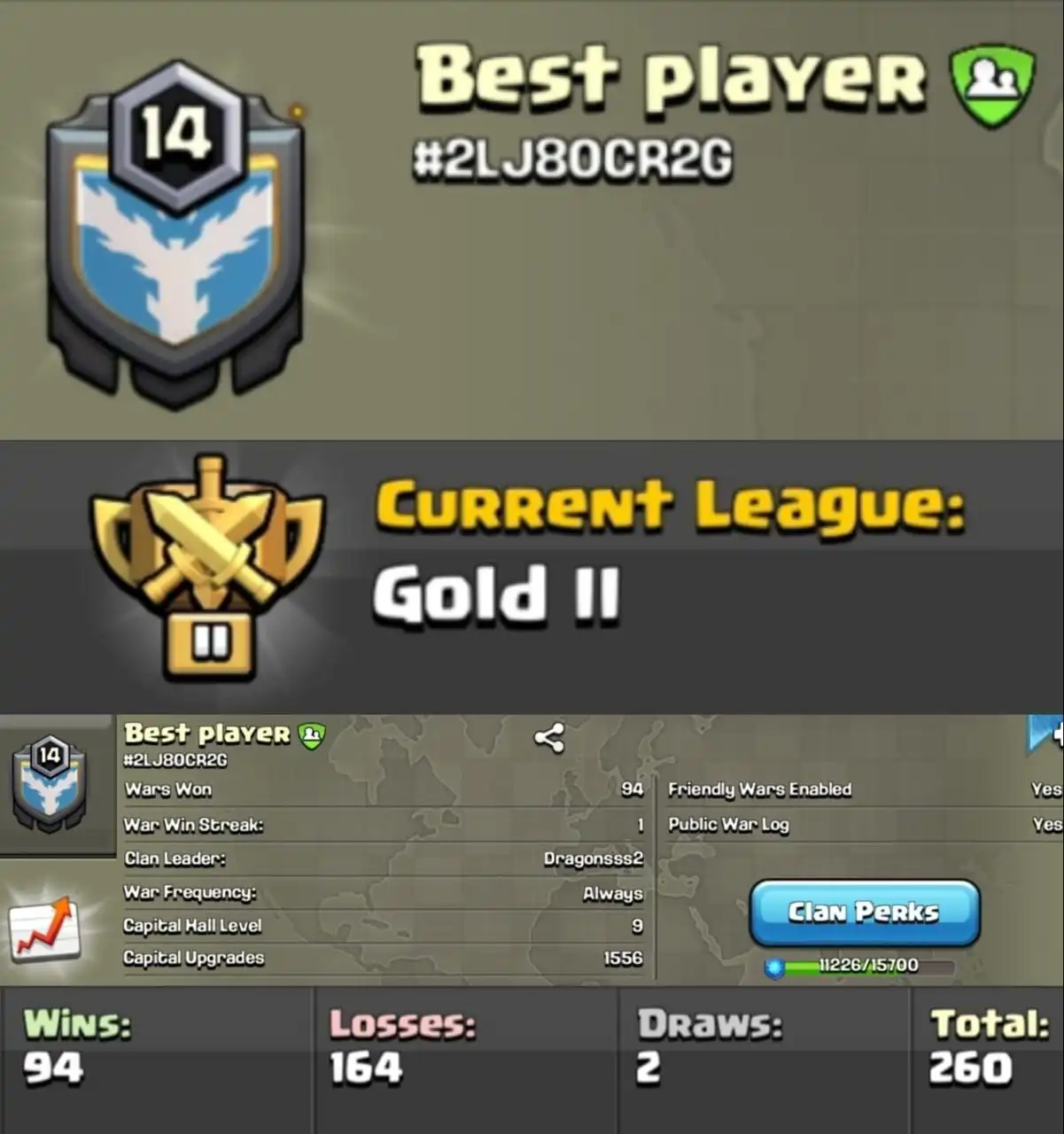 Level 14 clan || clan capital 9 || gold 2 || name - Best player