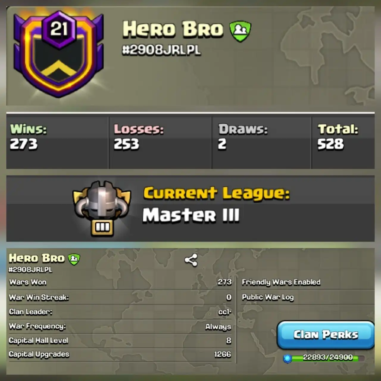Level 21 clan || clan capital 8 || master 3 || name - Hero Bro