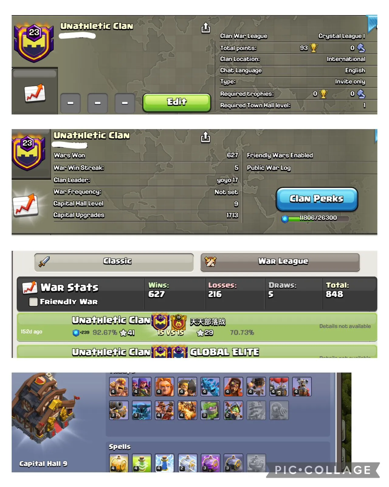 🔥NAME-Unathletic Clan | LVL 23.5💥| ☠️WARLOG W/L/D:627/216/5/☠️ CWL League: CRYSTAL 1🏆| CC: ALMOST 10 !!🎃💥
