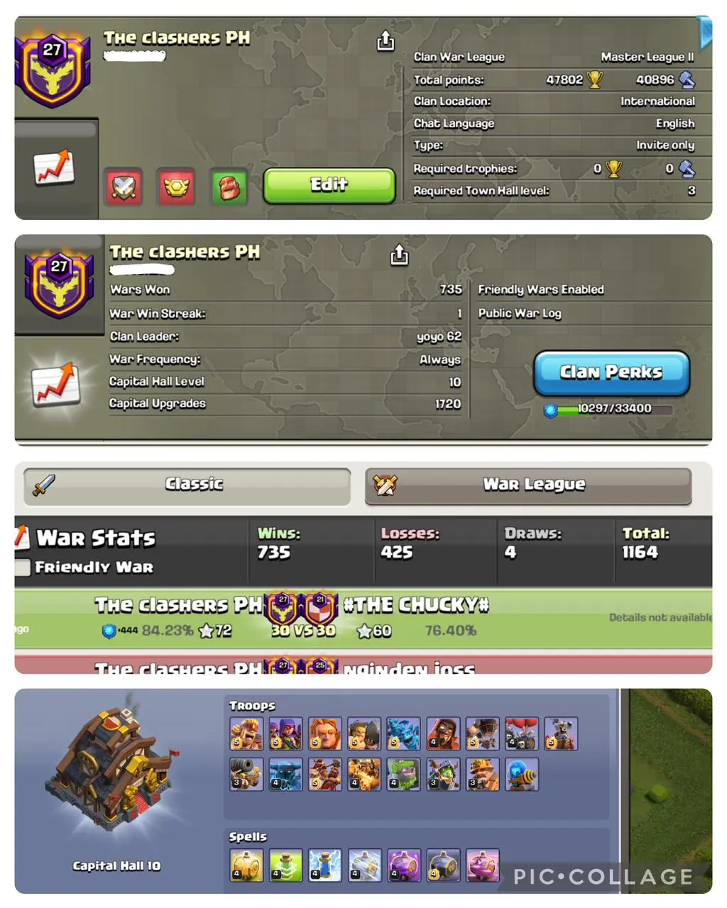 ⚡NAME- The Clashers Ph |💥 LVL 27.5🥵|💀 WARLOG W/L/D:735/425/4💀| CWL League: MASTER 2🎃| CC: 10 ! 🔥