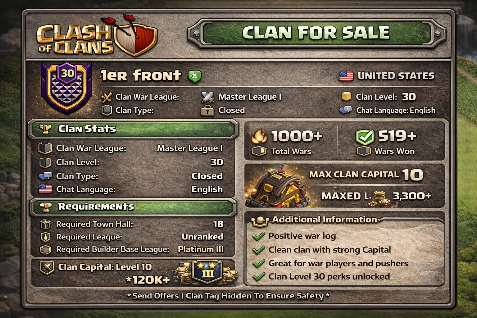 🇨🇦✨ Name: TEAM CANADA | LEVEL 29 + CC 10 | MASTER 3 | GOOD WARLOG | YOUR ACCOUNT WILL BE PROMOTED TO LEADER | FAST DELIVERY! 🚚