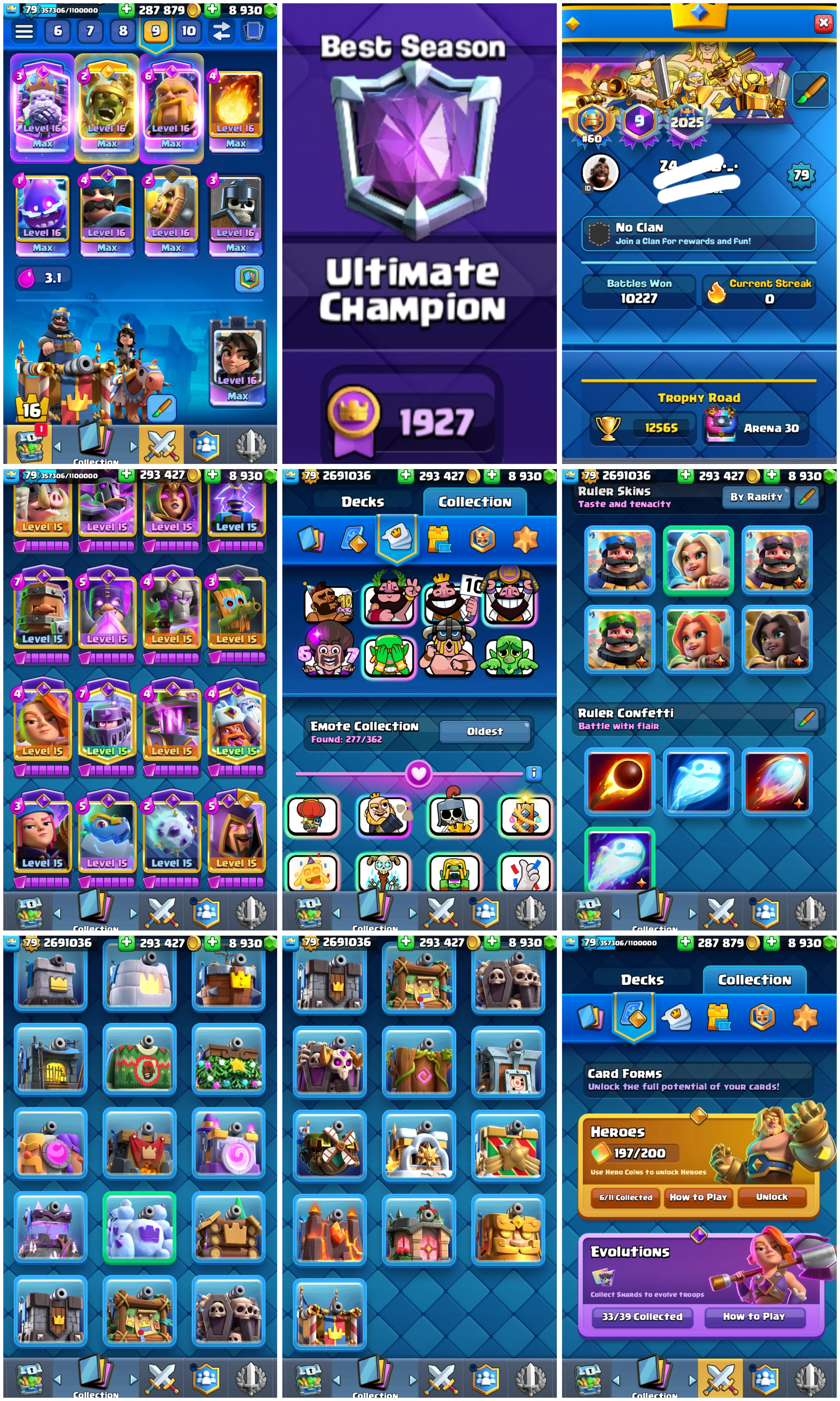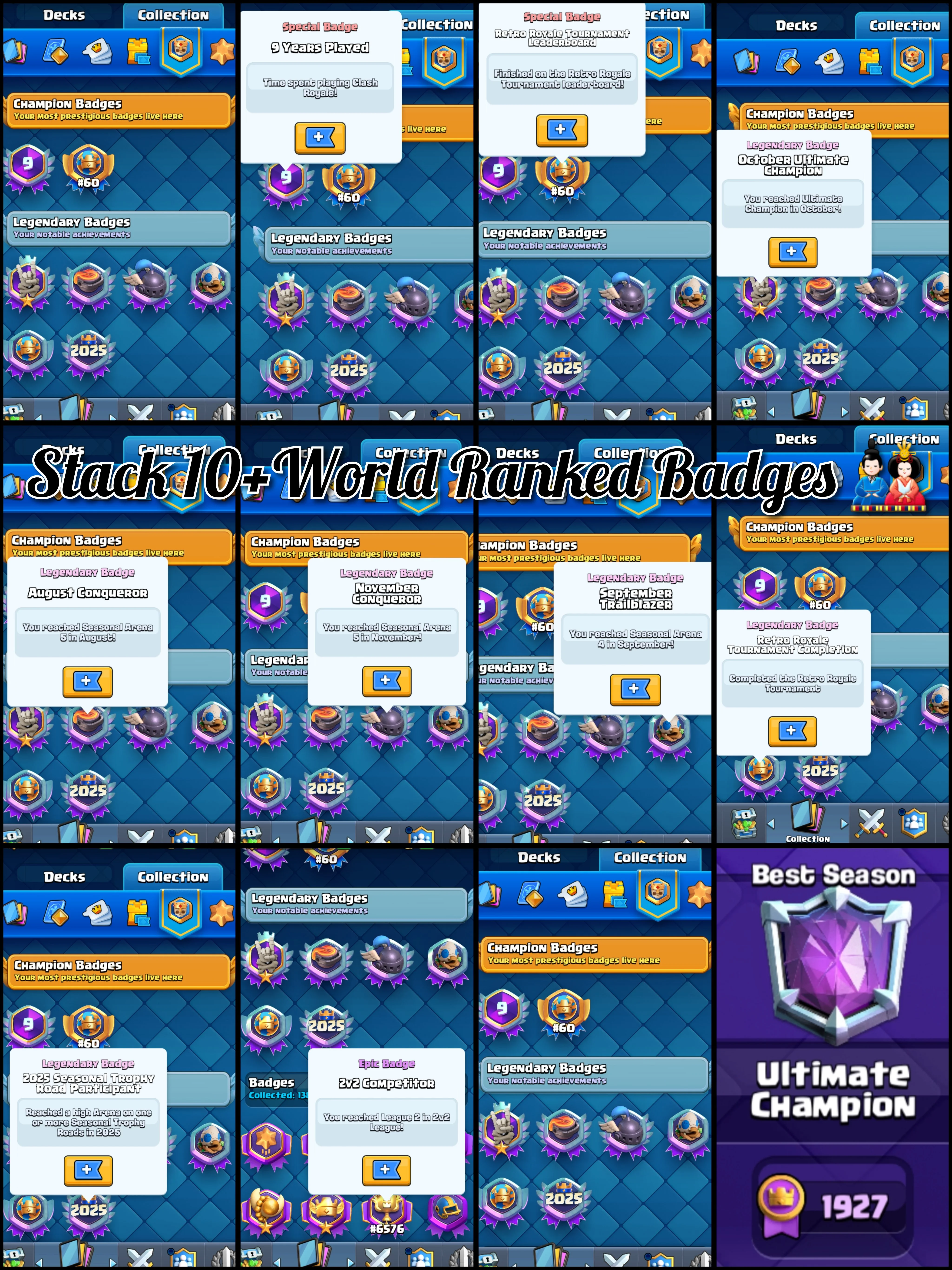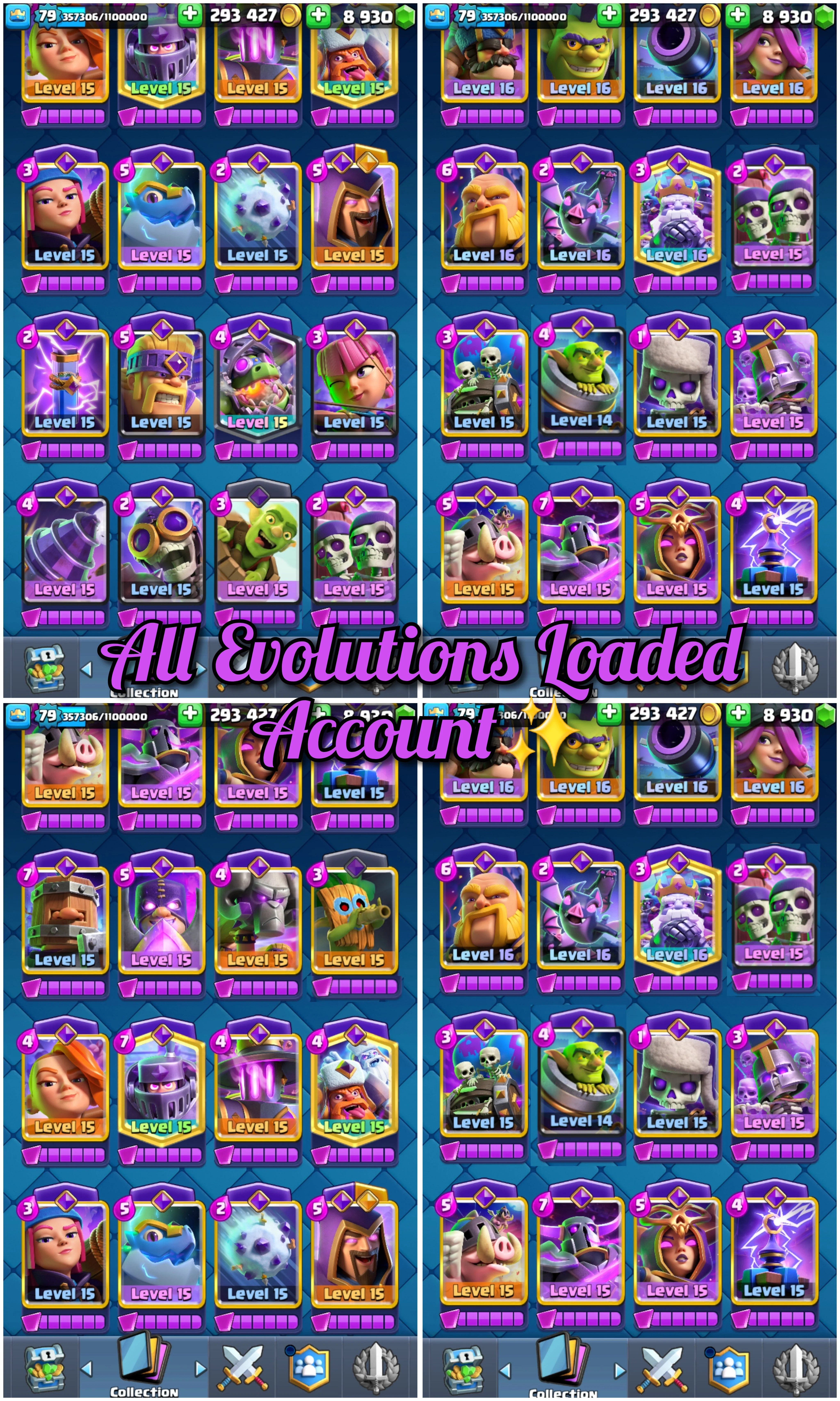 🦄✨{3K$+ INVESTED} WORLD #60 RANK 39/39 EVOS ALL 121 MAX 100 ELITES 10 YEAR OLD 9K GEMS NEW HEROES & LEVEL 16 CARDS RAREST 275+ EMOTES KING BELT HIGH XP80 12.5K TROPHY ARENA 30 10+ LEGENDARY BADGES + FRAMES ALL META DECKS MAX RENAME ORDER INSTANT KT16 😊