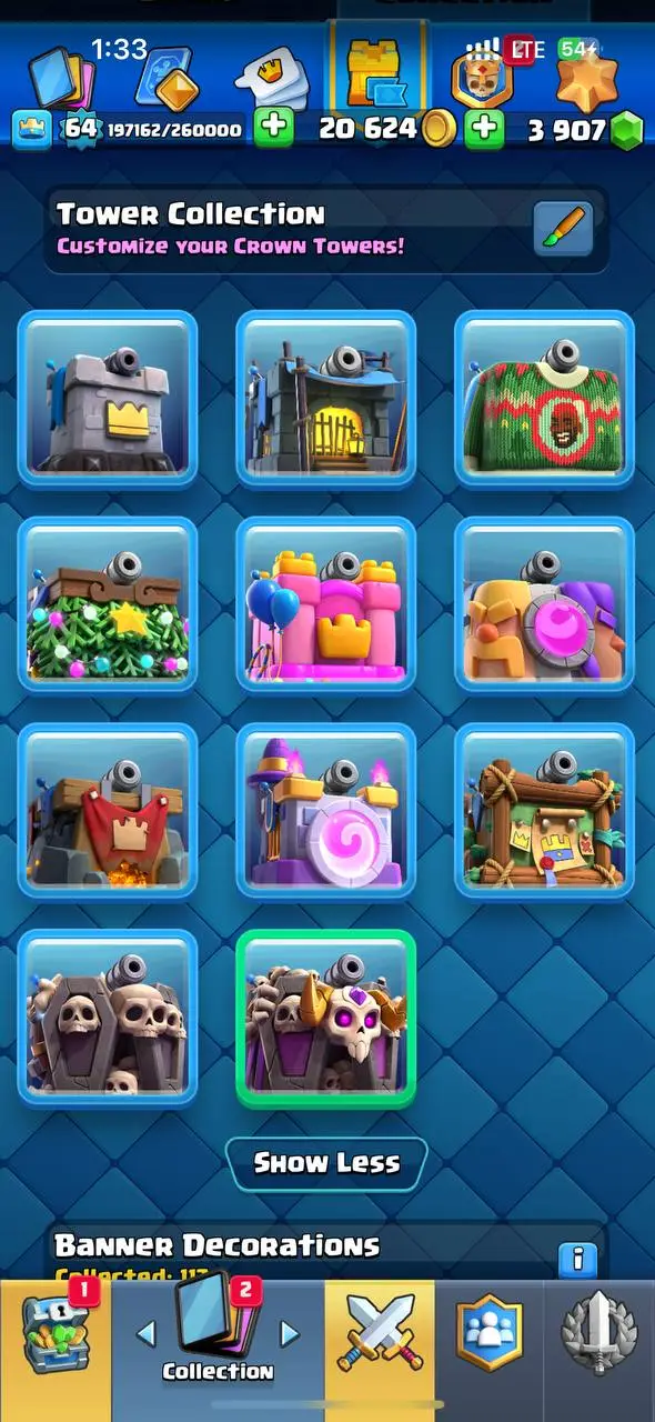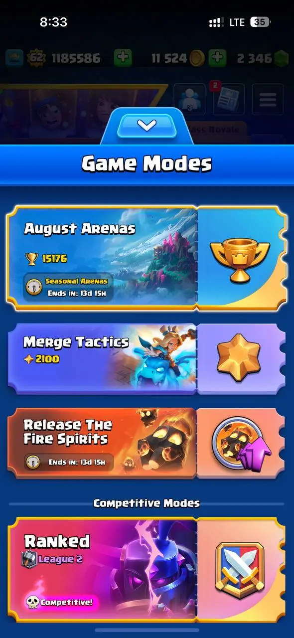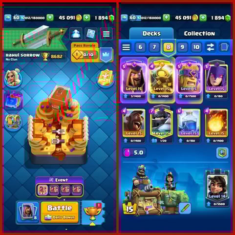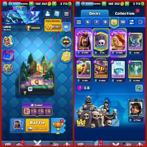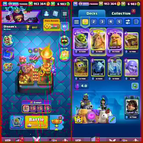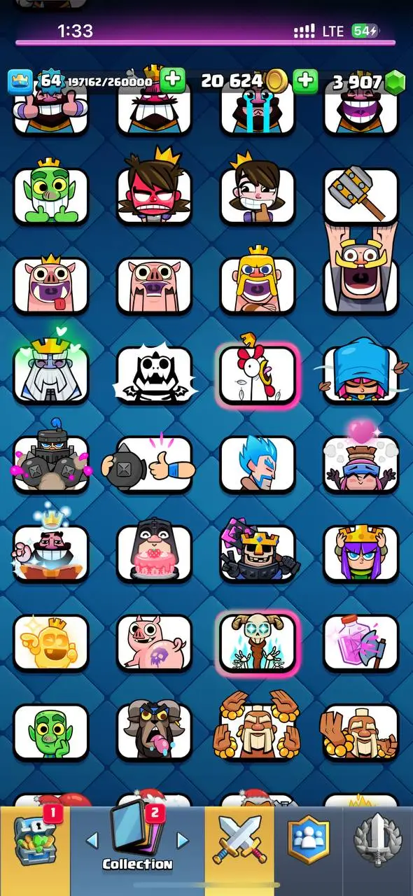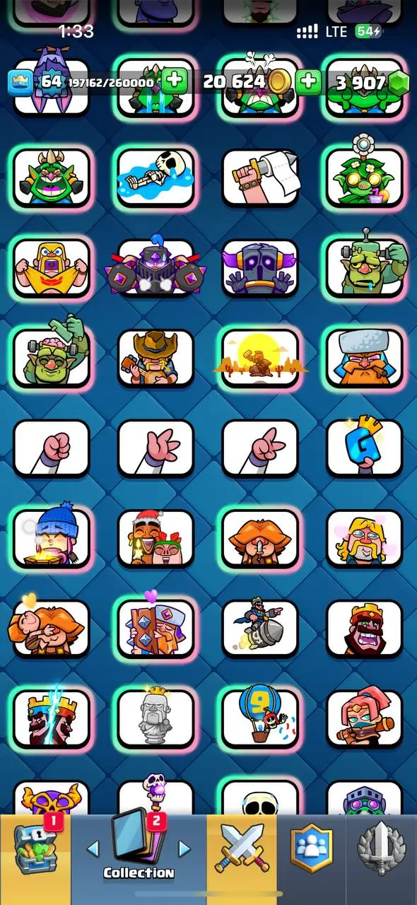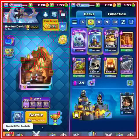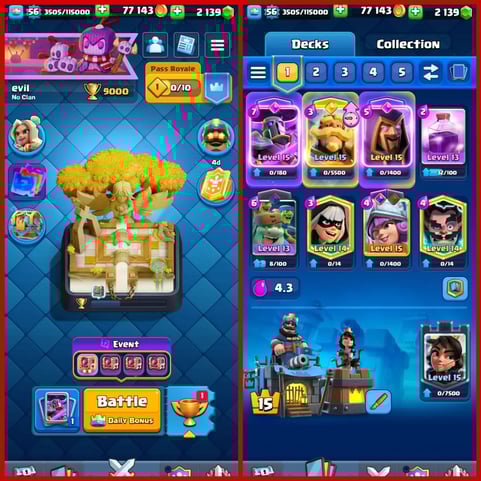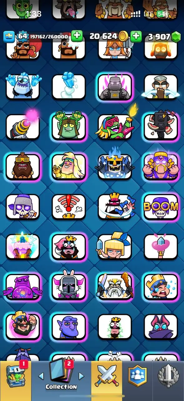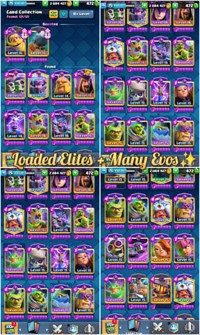 🥶 67 XP 😱 88 CARD MAX 🤩 32 ELITE CARD 🥵 20 EVOLUTIONS 😈 130 RARE EMOTE 👿 12 TOWER SKIN 🎫 2500 GEM 💎 15000 TROPHIES 🏆 INSTANT DELIVERY 🚚