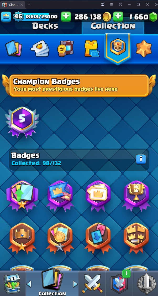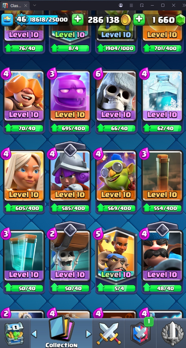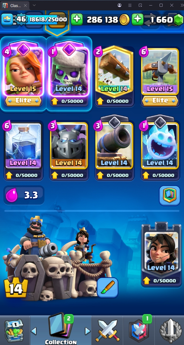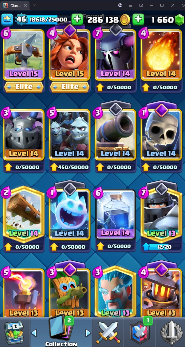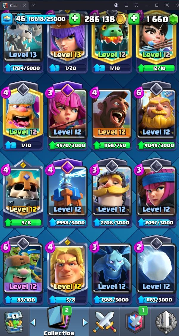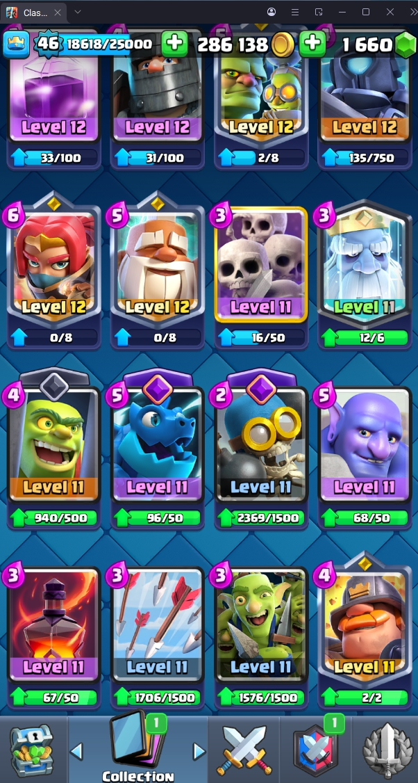 9764 TROPHY 🏆 46 LVL 💯 KT 14 👑 121 CARDS ♦️ 9 MAX CARDS 👑 2 ELITE CARDS 🔮 10 EVO 💯 EMOTE 47 🎭 #LPYVGPJGV ⸱ TAG ACCOUNT ♥️