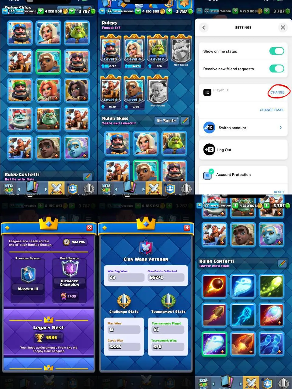 🔥 CHEAP 💫77LVL🚀ULTIMATE-CHAMPION✅27EVOLUTIONS🟣ALL-CARDS🚀12000🏆20 LVL 16 CARDS⚡️16 LVL KT✨