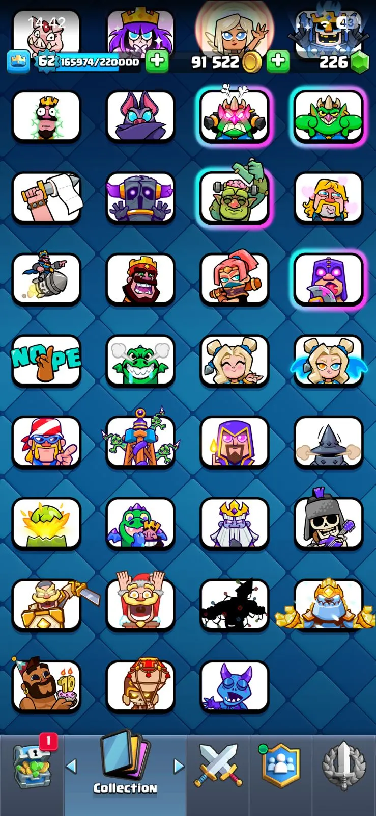 cheapest🔥cr lv 62🔥evo 31🔥arena 28🔥trophy 11500🔥skins tower 13🔥full access account🔥