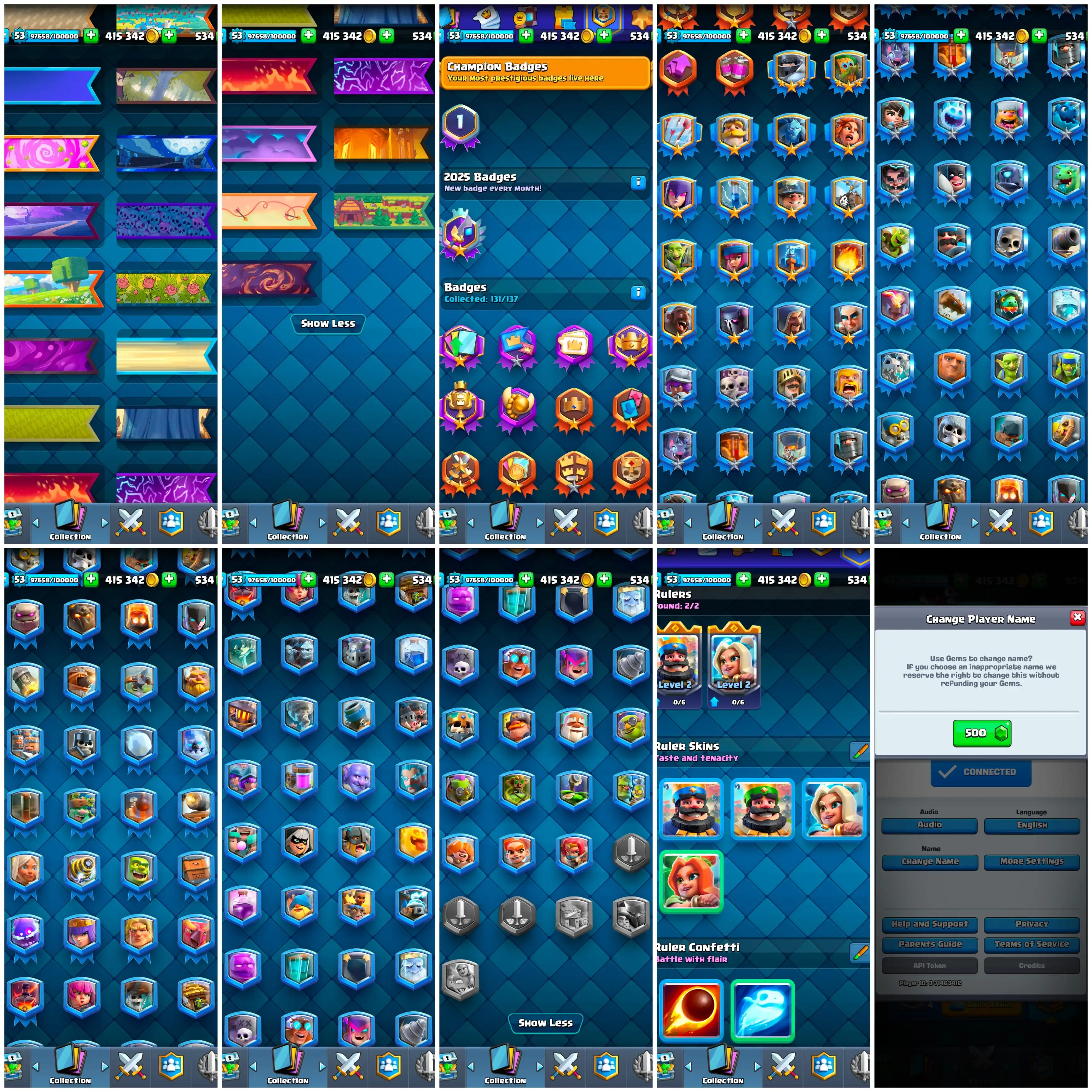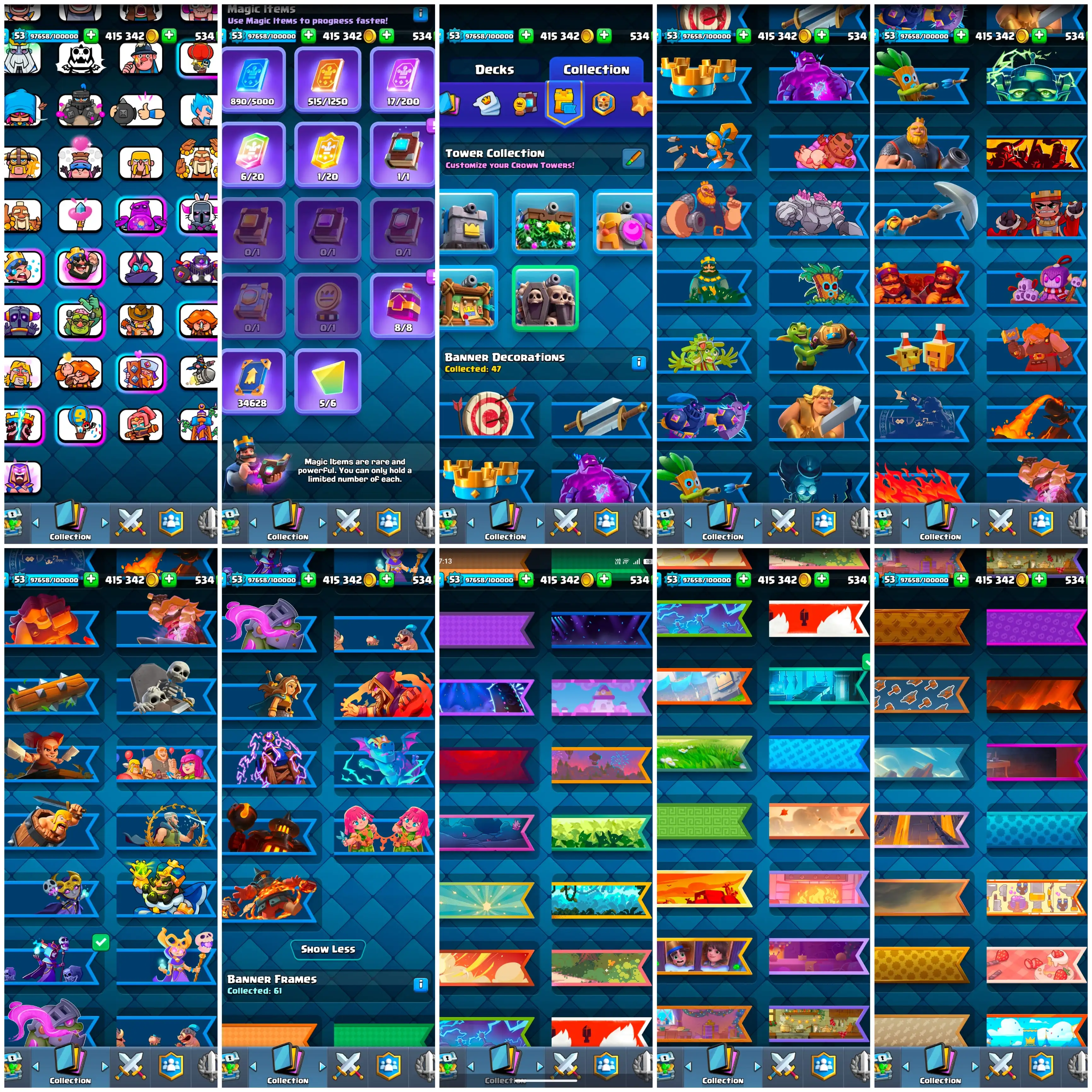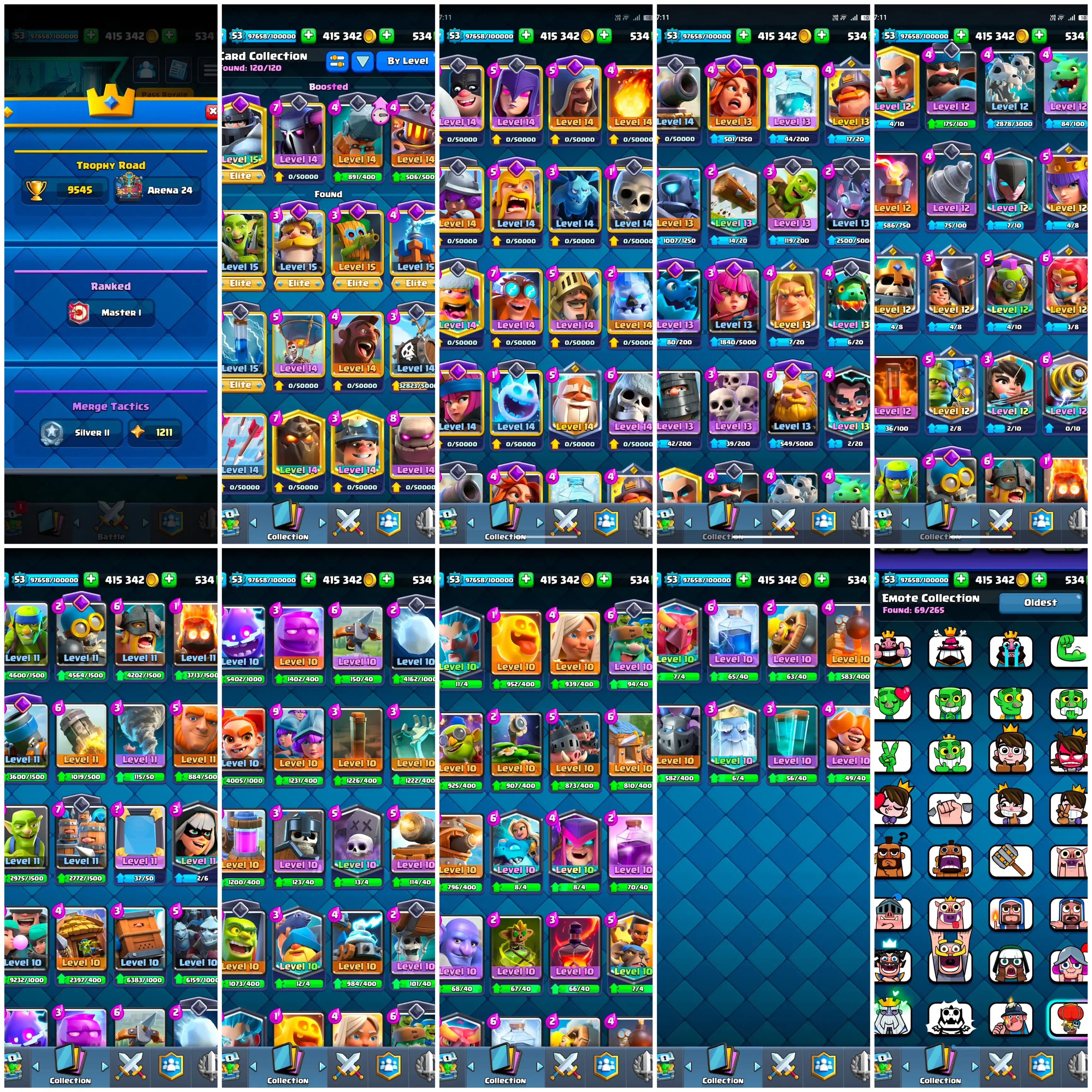 CLASH ROYALE ❄️ LVL 53 👅 ARENA 24 🏆 9545 TROPHY 👁 13 EVO CARDS ❄️ 31 MAX CARDS 🌲 6 ELITE CARDS 🌟 KT 14 🌙 1 YRS SPECIAL BADGES ♥ 120 CARDS 📛 FAST DELIVERY