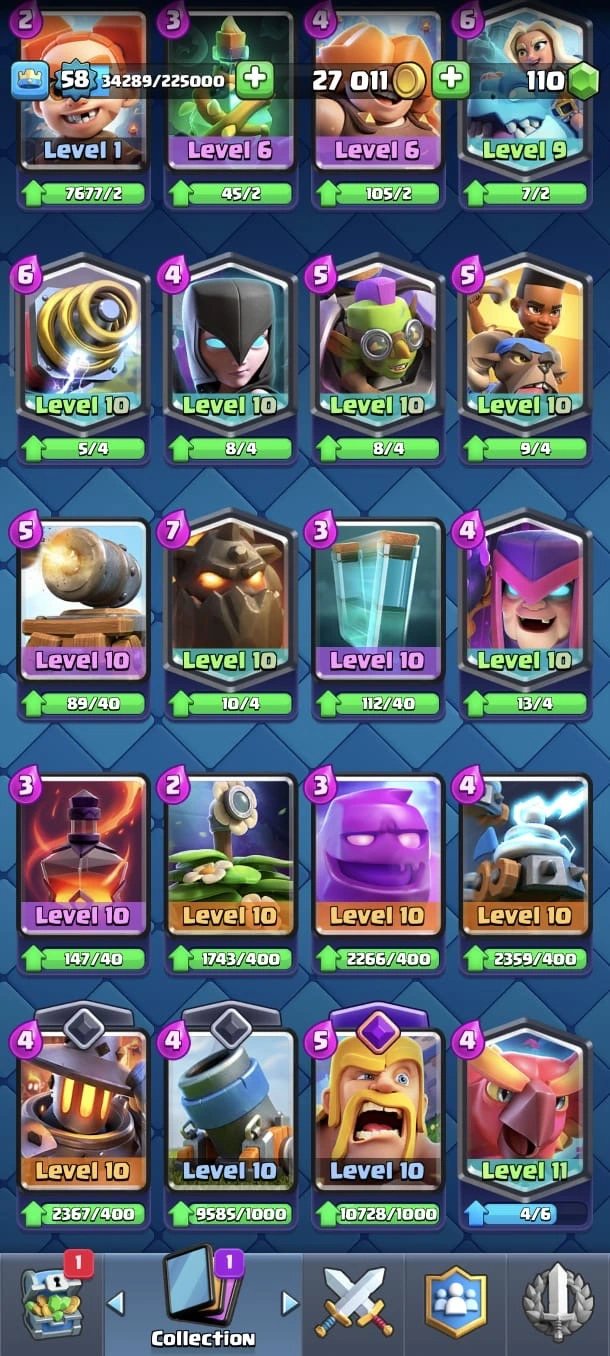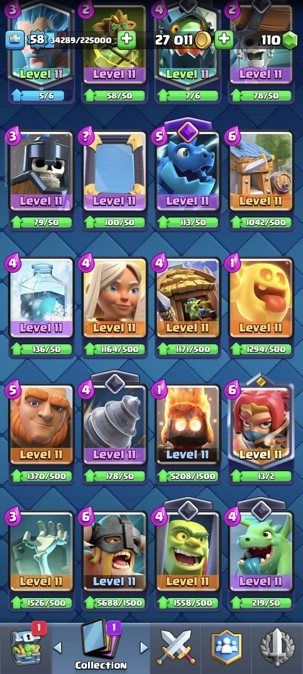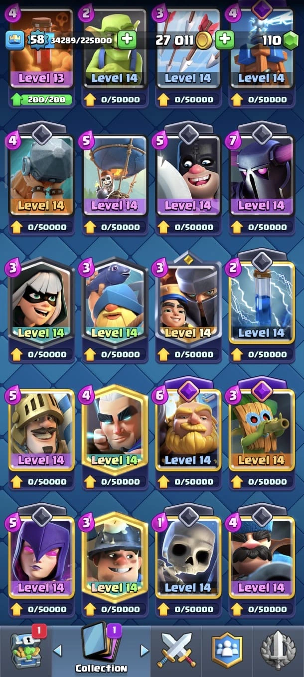 CR LV 58 🔥 Evo 16 🔥 Elite 17 🔥 Max Cards 37 🔥emote 129 🔥 Trophy 13800 🔥 Cheap & Safe 🔥