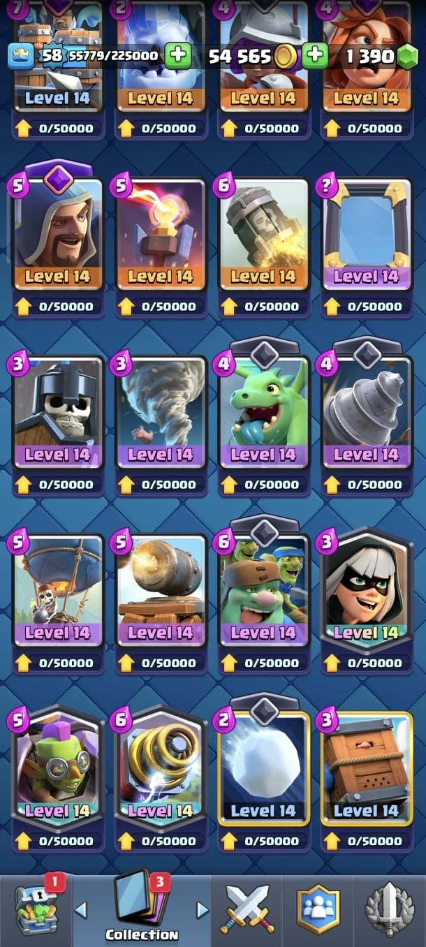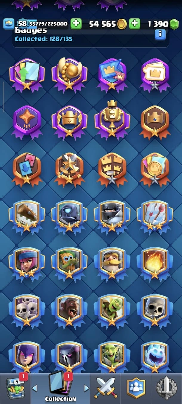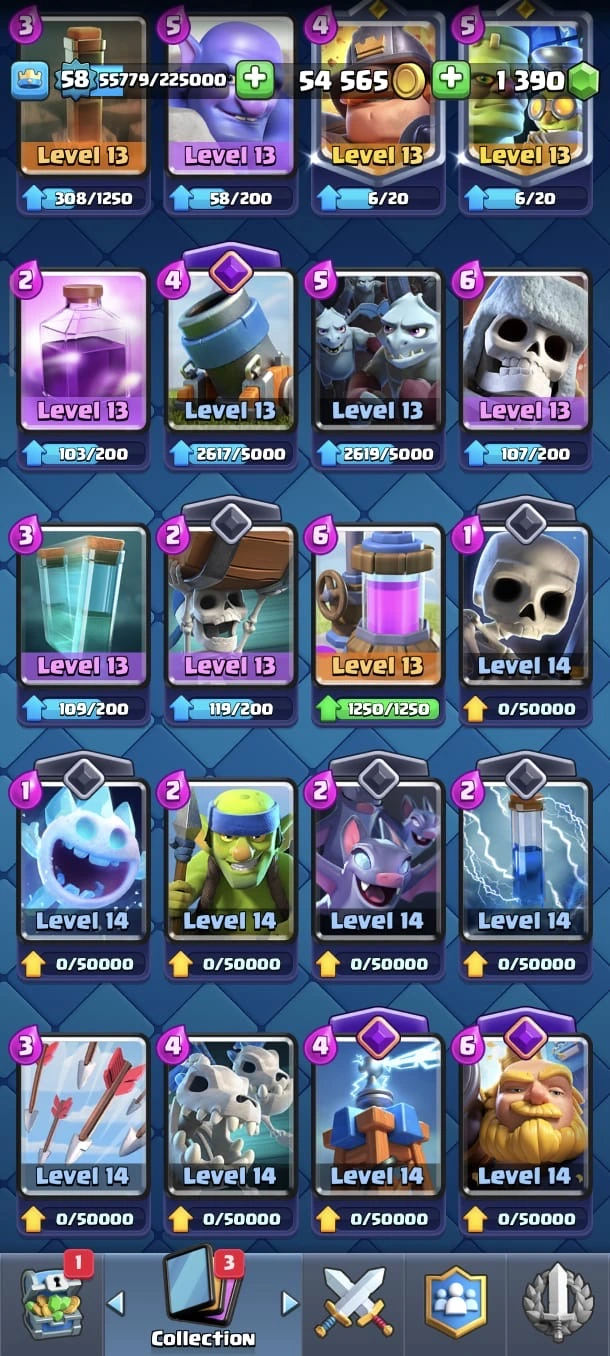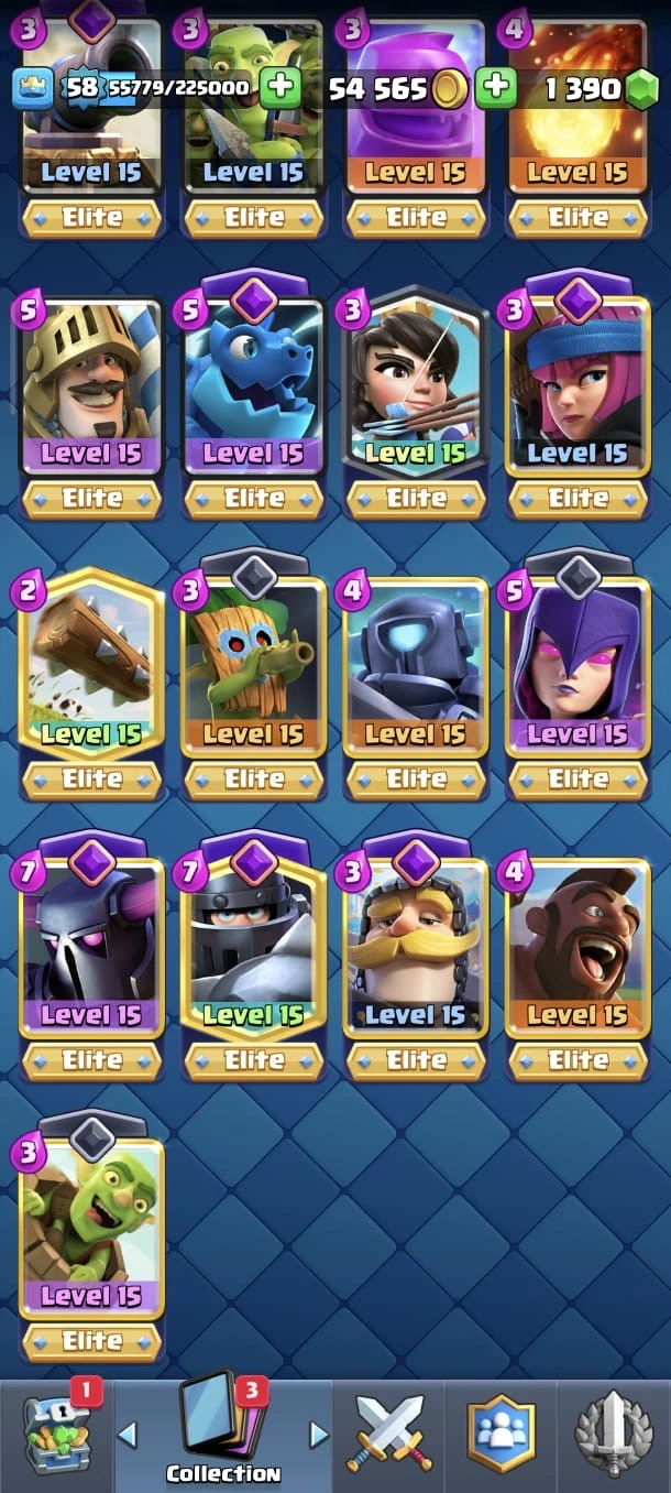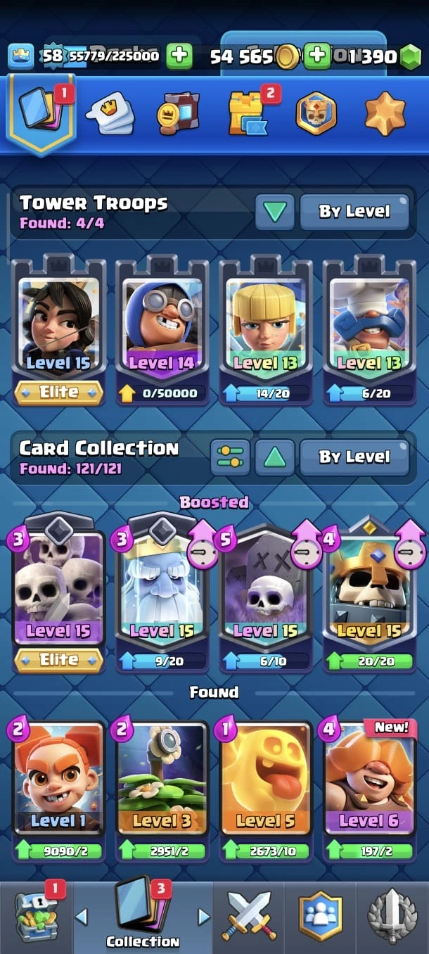 CR LV 58 🔥 Evo 17 🔥 Elite 18 🔥 Max Cards 47 🔥 Emote 111 🔥 Trophy 15145 🔥 Change name free🔥