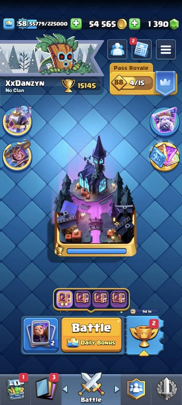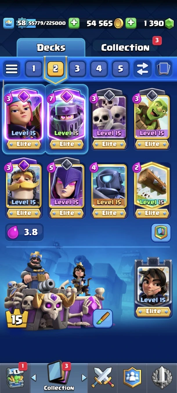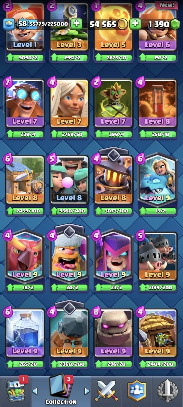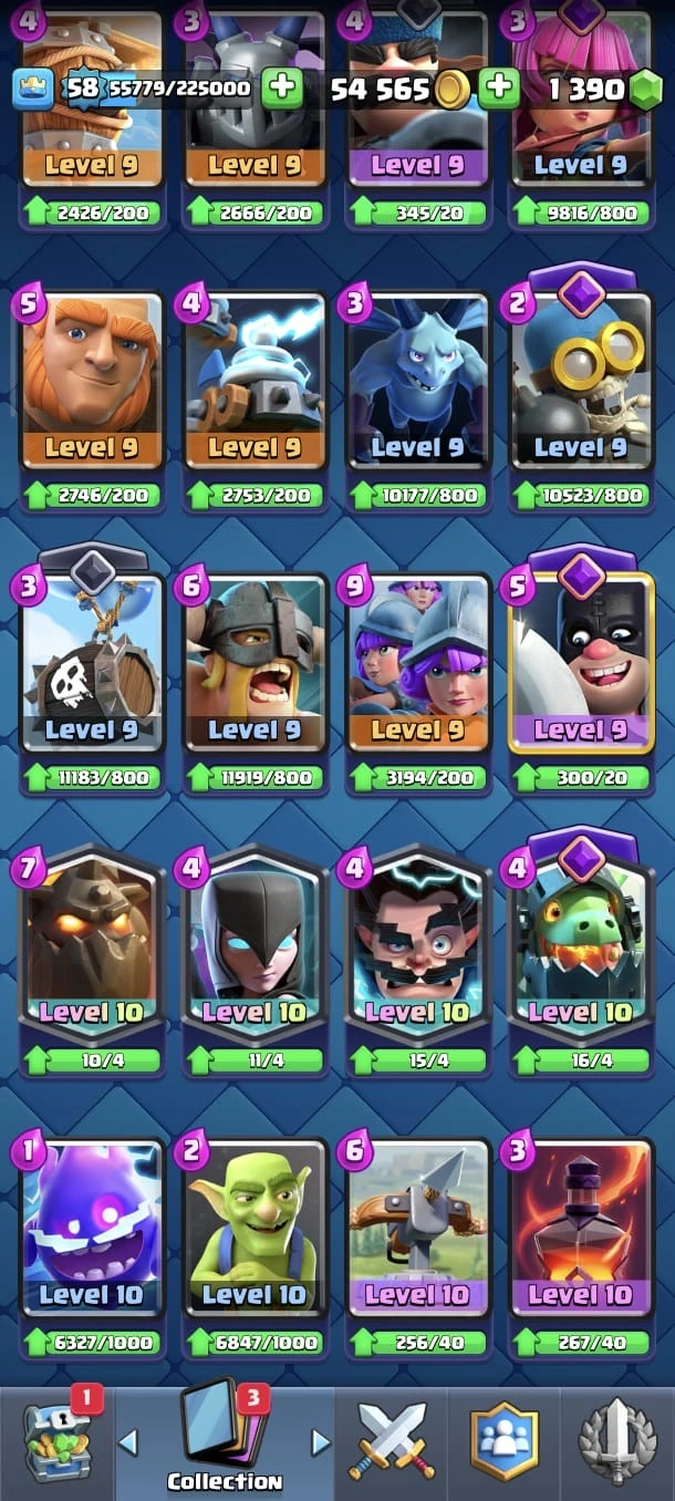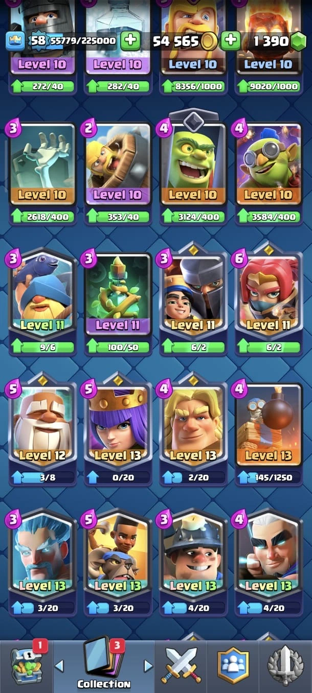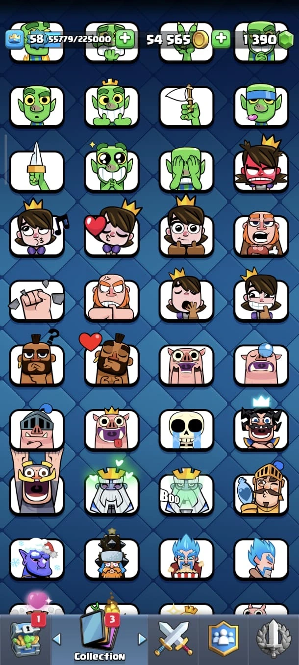 CR LV 58 🔥 Evo 17 🔥 Elite 18 🔥 Max Cards 47 🔥 Emote 111 🔥 Trophy 15145 🔥 Change name free🔥