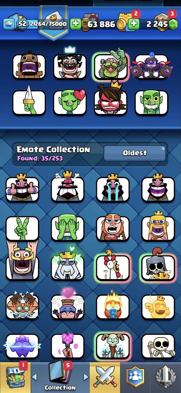 FREE COC TH13 ✨ KT 14 🔱 LVL 52 🏆 CUPS[8617] ✨ MAX CARDS [21] ✨ ELITE [4] ✨ EVO [6] ✨ LVL 14 [17] ✨ EMOTES [35] 🔱 CARDS [118] ✨ 10000% SAFE