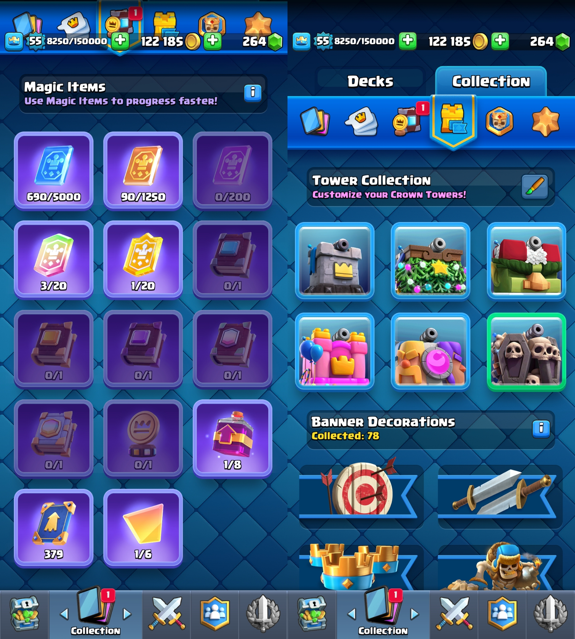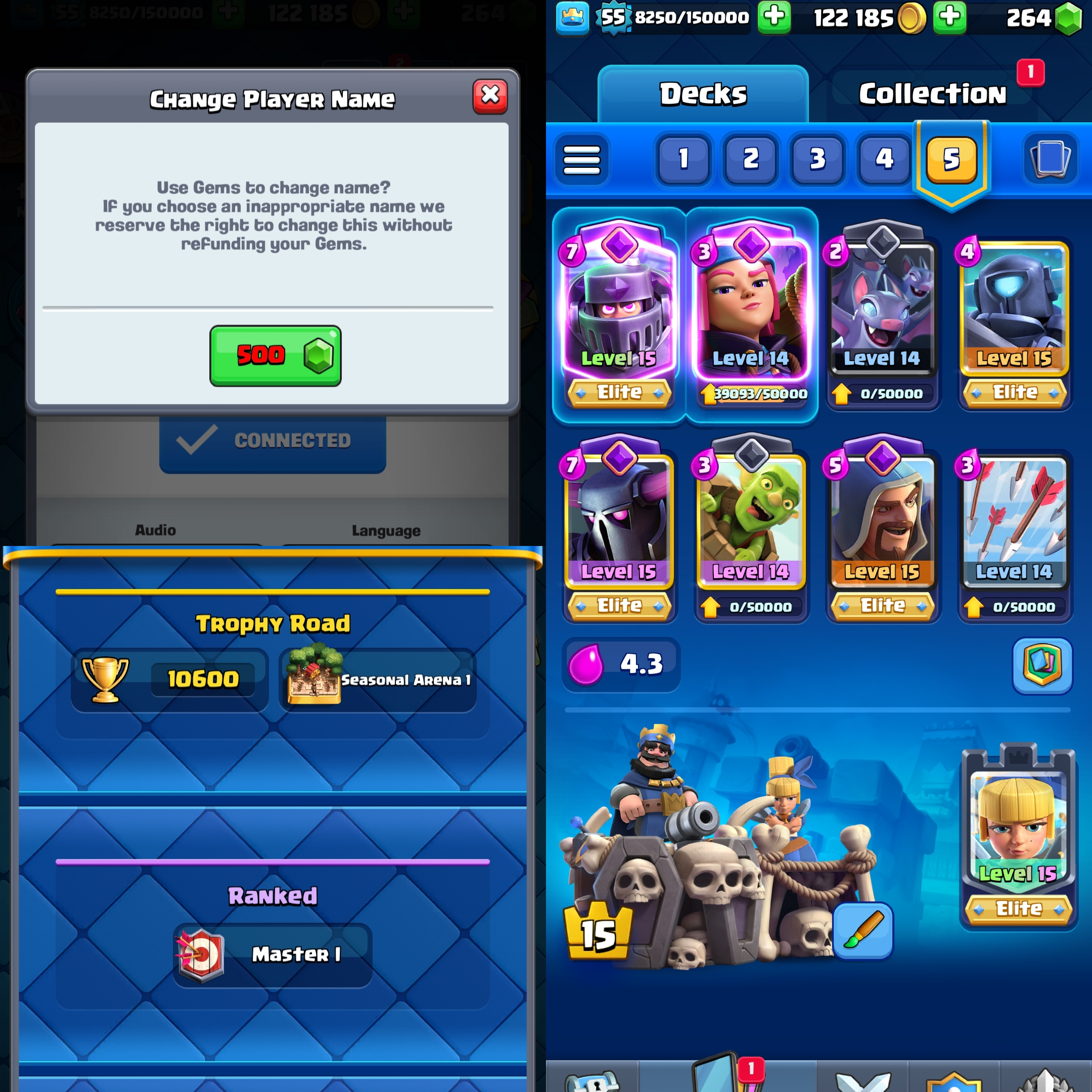 ⭐ KT 15 ⭐ 55 EXP ⭐ 10600 TROPHY ⭐ 7 ELITE CARD & 35 MAX CARD ⭐ 90 Emotes ⭐ Namechange 500 ⭐ 5 TOWERSKINS