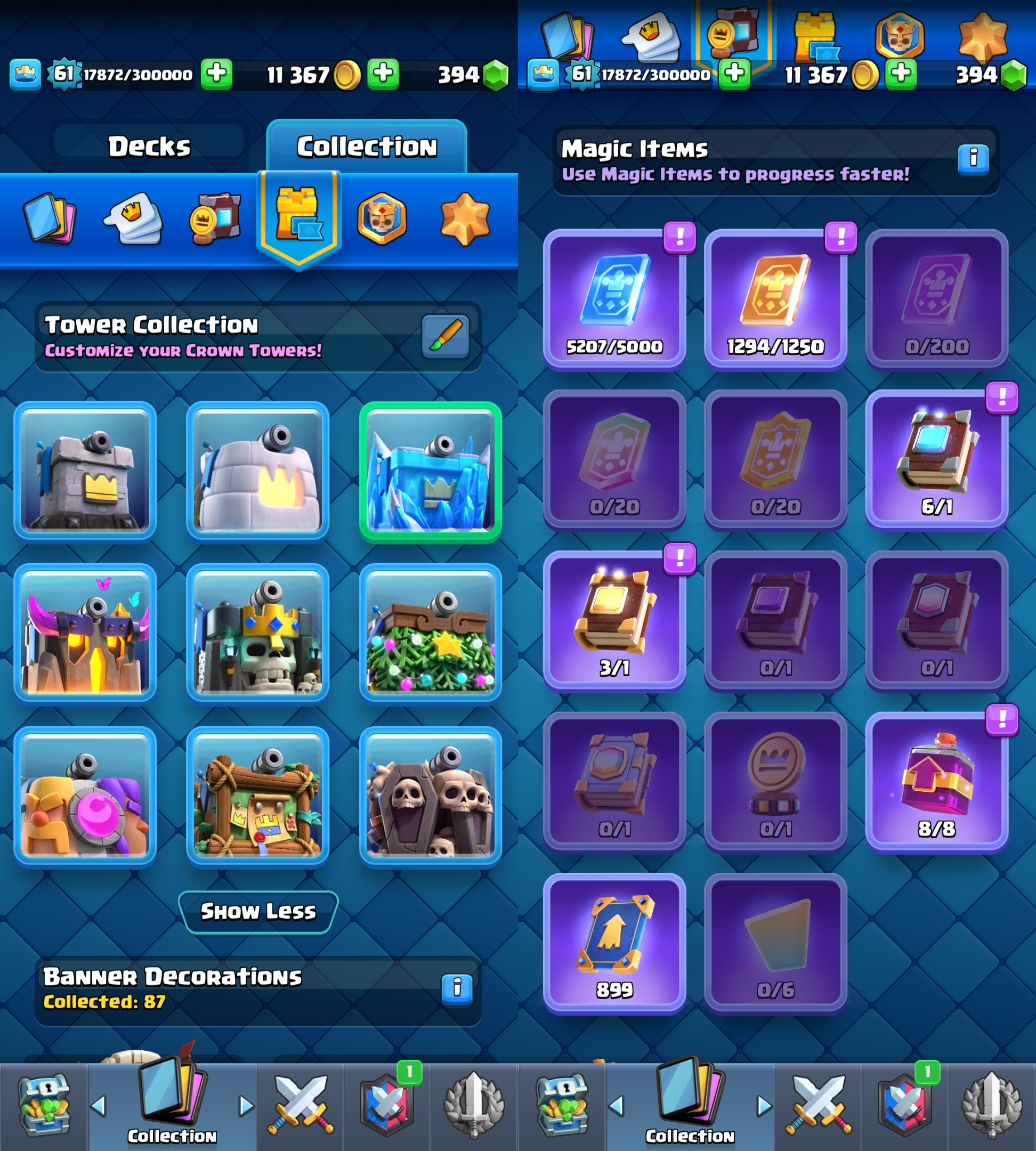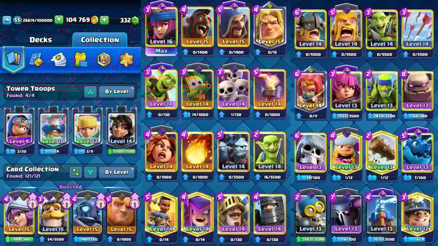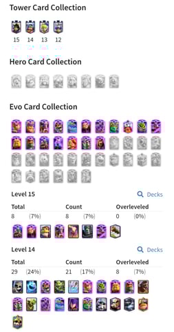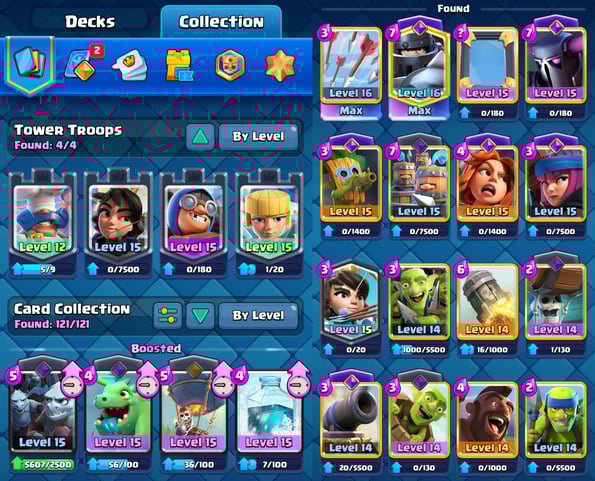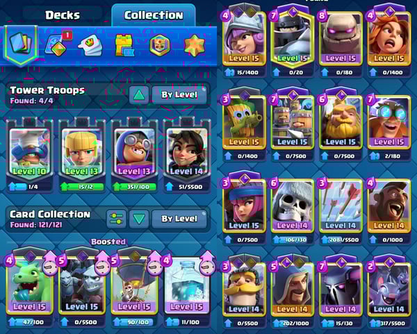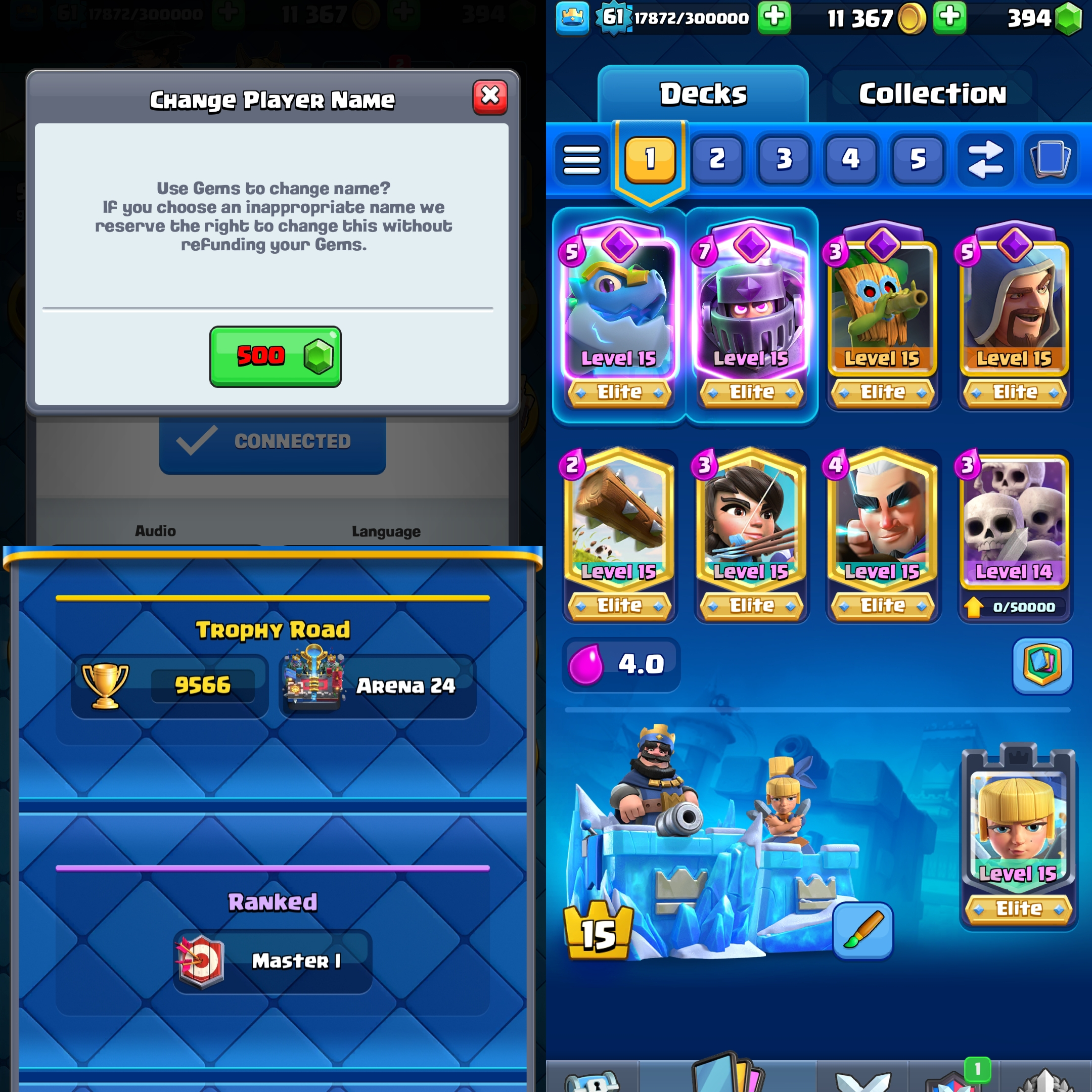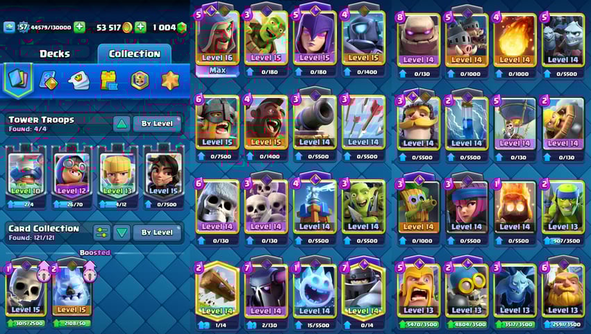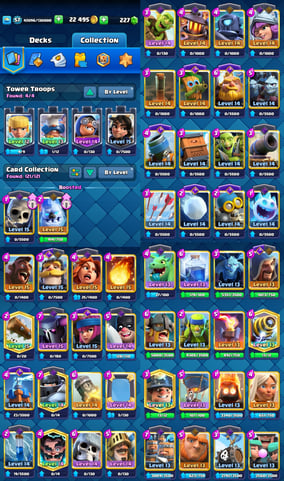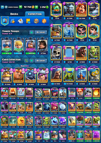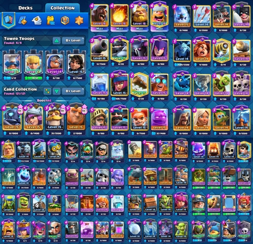 ⭐ KT 15 ⭐61 EXP ⭐16 EVOLUTION⭐23 ELITE CARD⭐98 MAX CARD ⭐8 TOWERSKINS ⭐NAMECHANGE 500 ⭐ Legendary Arena ⭐ 9500+ Trophy