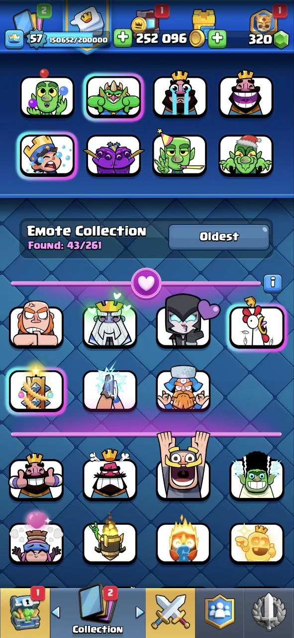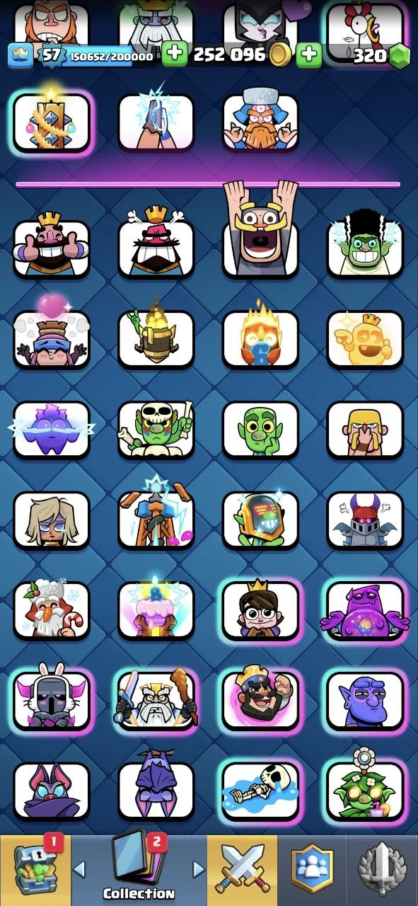 ✨ KT 15 🔱 LVL 57 🏆 CUPS[8030] ✨ MAX CARDS [50] ✨ ELITE [10] ✨ EVO [7] ✨ LVL 14 [40] ✨ EMOTES [43] 🔱 CARDS [115] ✨ 10000% SAFE