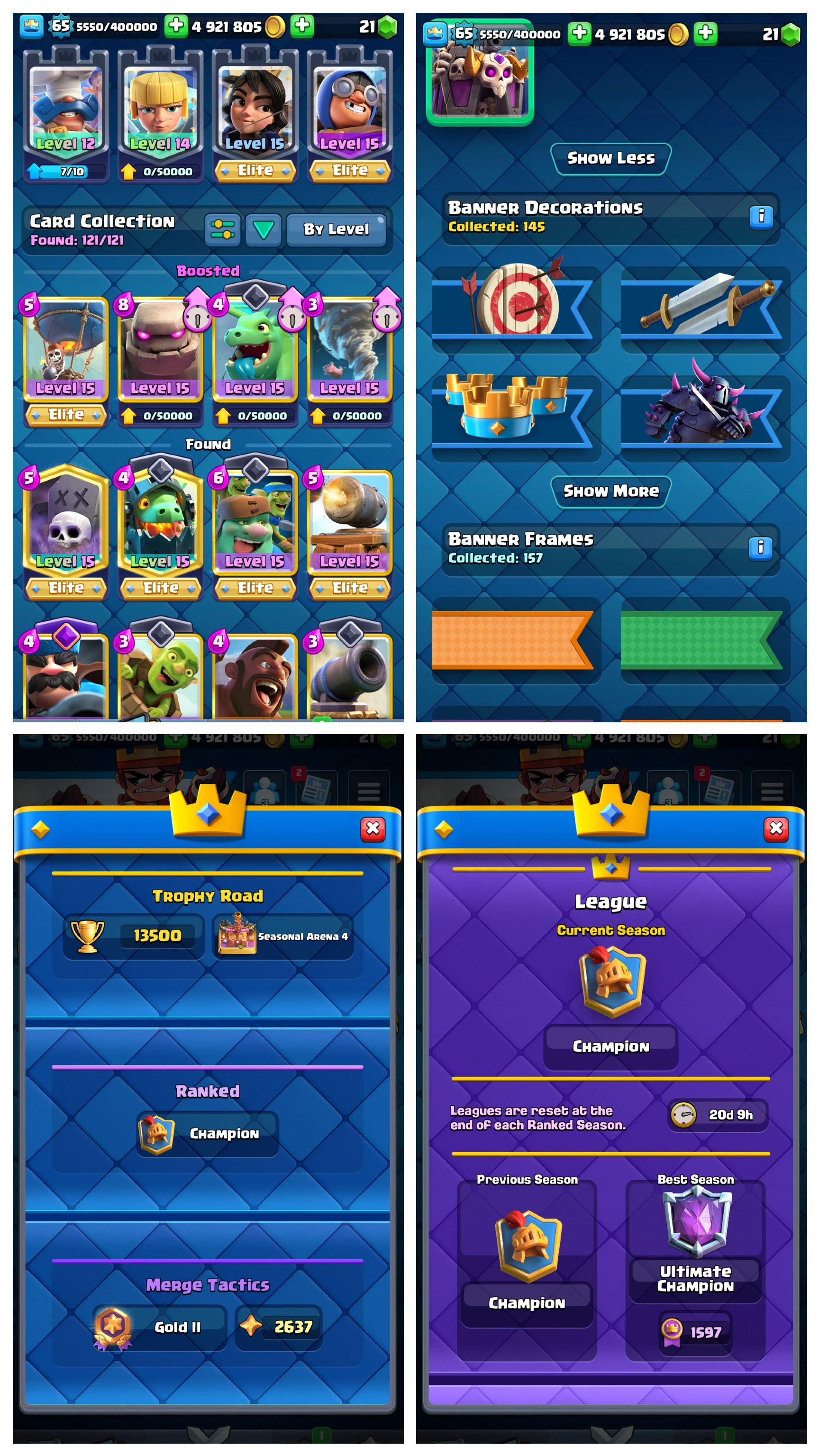 RAREST ✅ KT 15 (LVL.65)✅ 119 CARDS MAX ✅ 53 ELITES CARDS ✅ EMOTES-155 ✅ 5M GOLD ✅ 13,500 TROPHY ✅ EVOS-21 & 07 CARDS EACH HAS 3 SHARD ✅ ANDROID & IOS