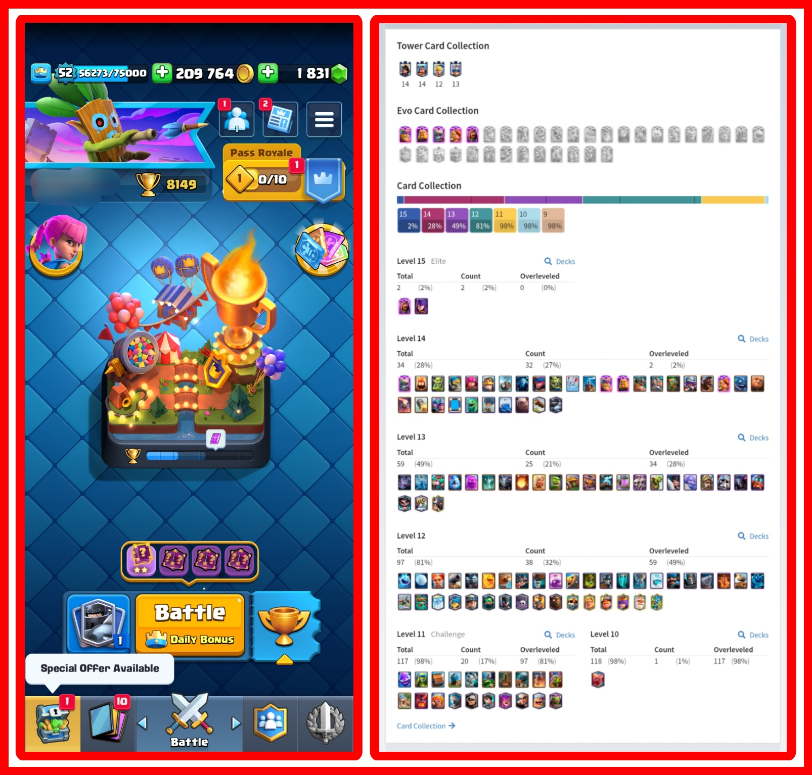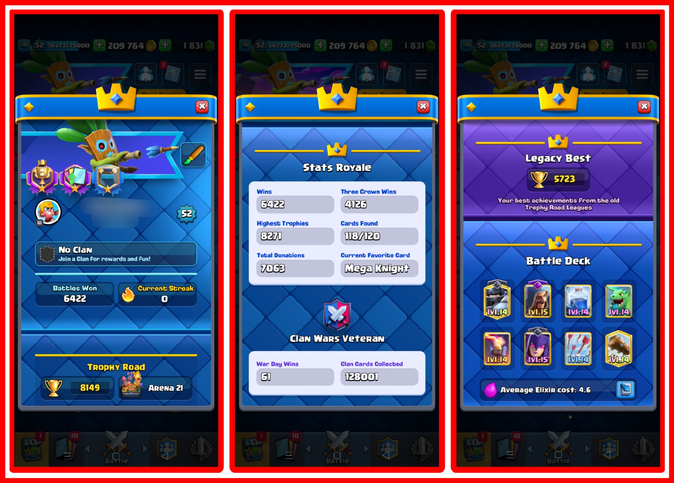 [VALUE DEAL] 💗 💀 5 EVOLUTION CARDS 😍 💕 34 MAX CARDS ☠️ 2 ELITE CARDS 😍 💖 LEVEL 52 🎁 😍 8149 TROPHIES 🏆 ❤️ ARENA LEVEL 21 🔥 KT LEVEL 14 💖 😍 NAME CHANGE 500 GEMS 💎 CHEAP PRICE 💸 INSTANT DELIVERY ☑️ 💯 ANDROID & IOS ☑️ 🤝