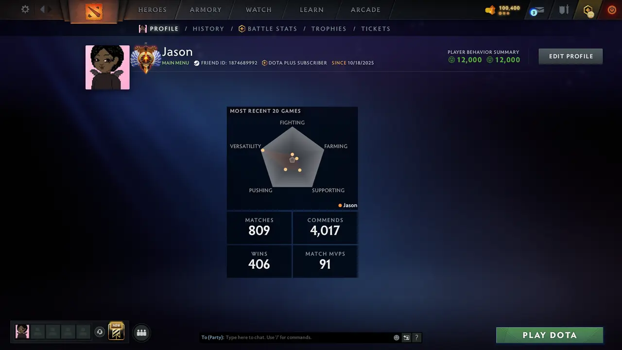6017 MMR ⸱ Immortal ⸱ Fast search(Main pool) ⸱ 12000 behavior ⸱ 809 matches ⸱ Original email