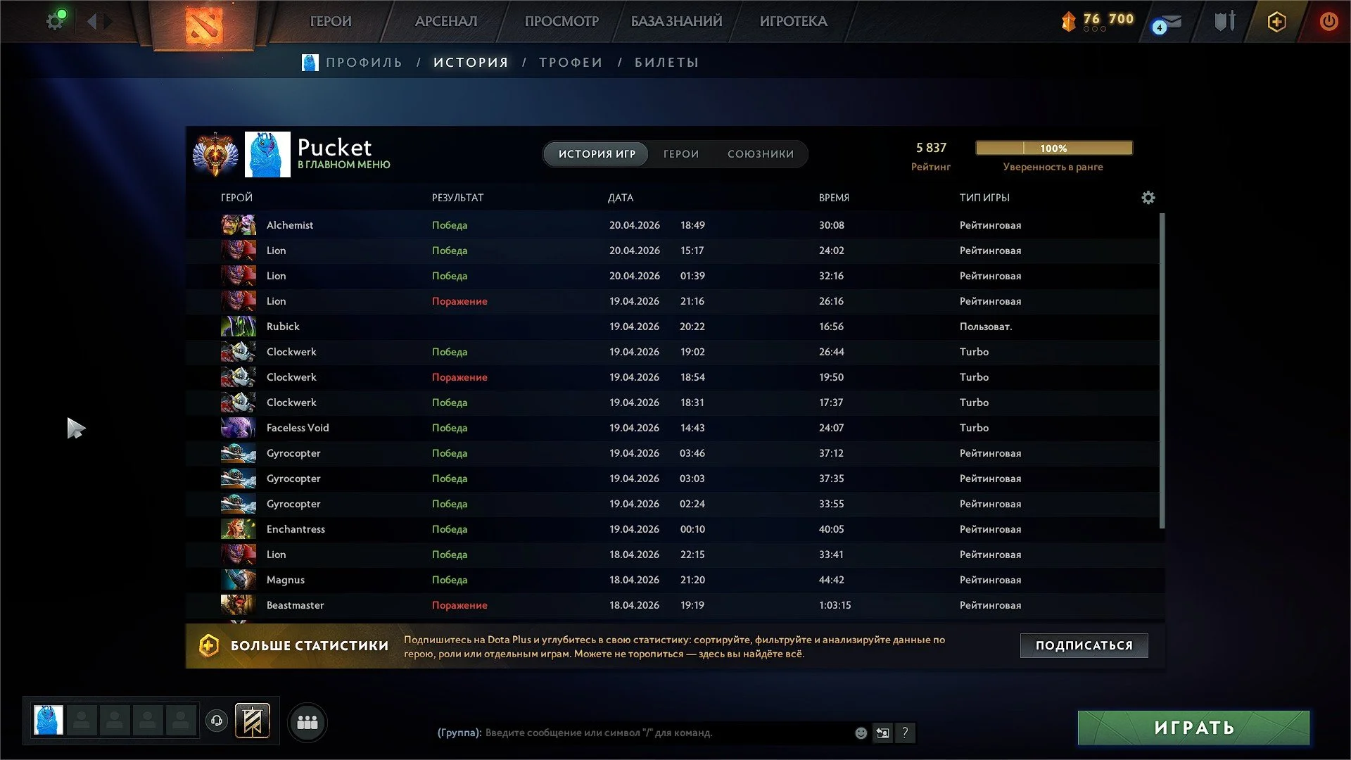 DO111//5837 MMR 1702 matches 53 lvl trophies Mainpool 10761 decency 1629 hours