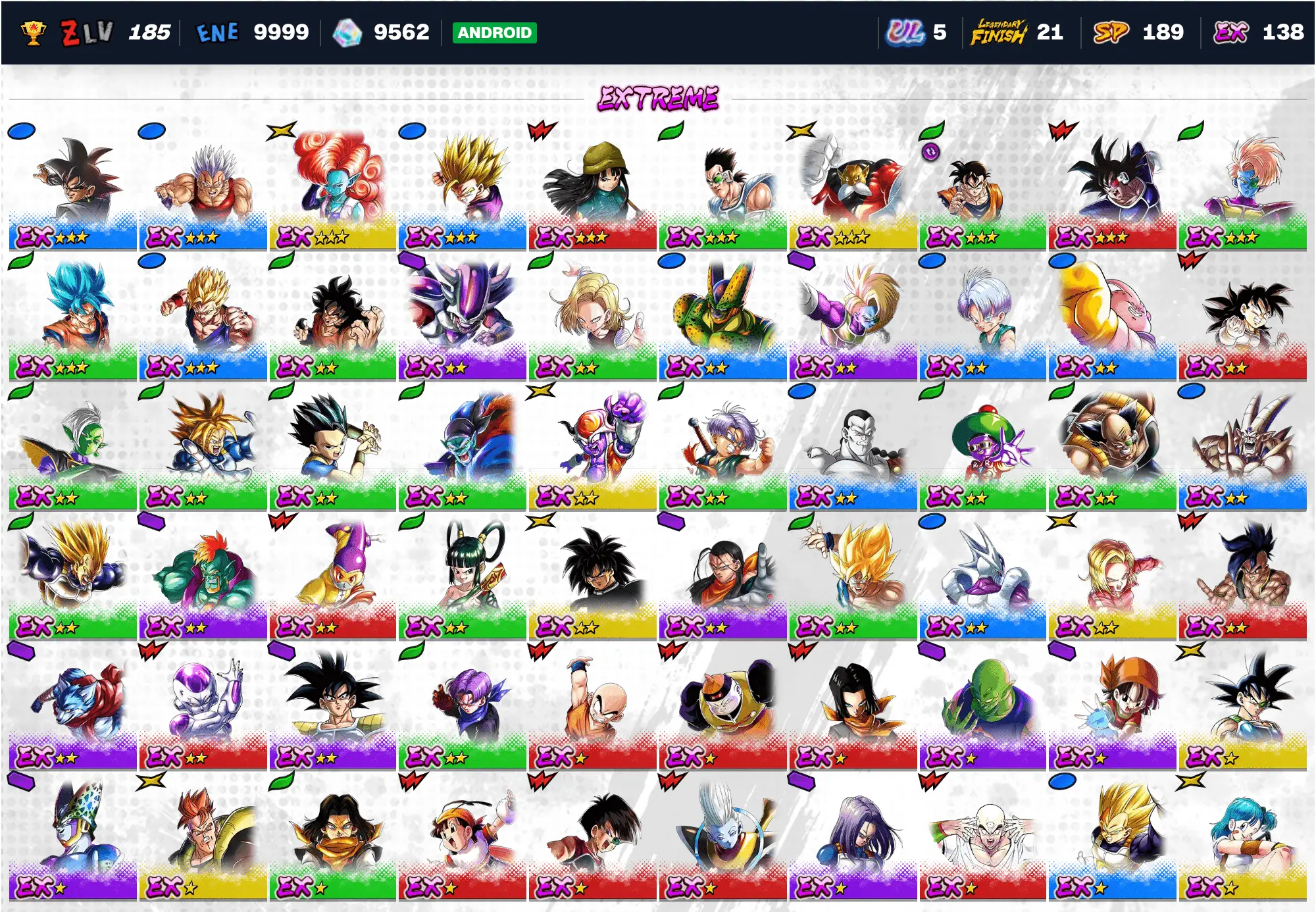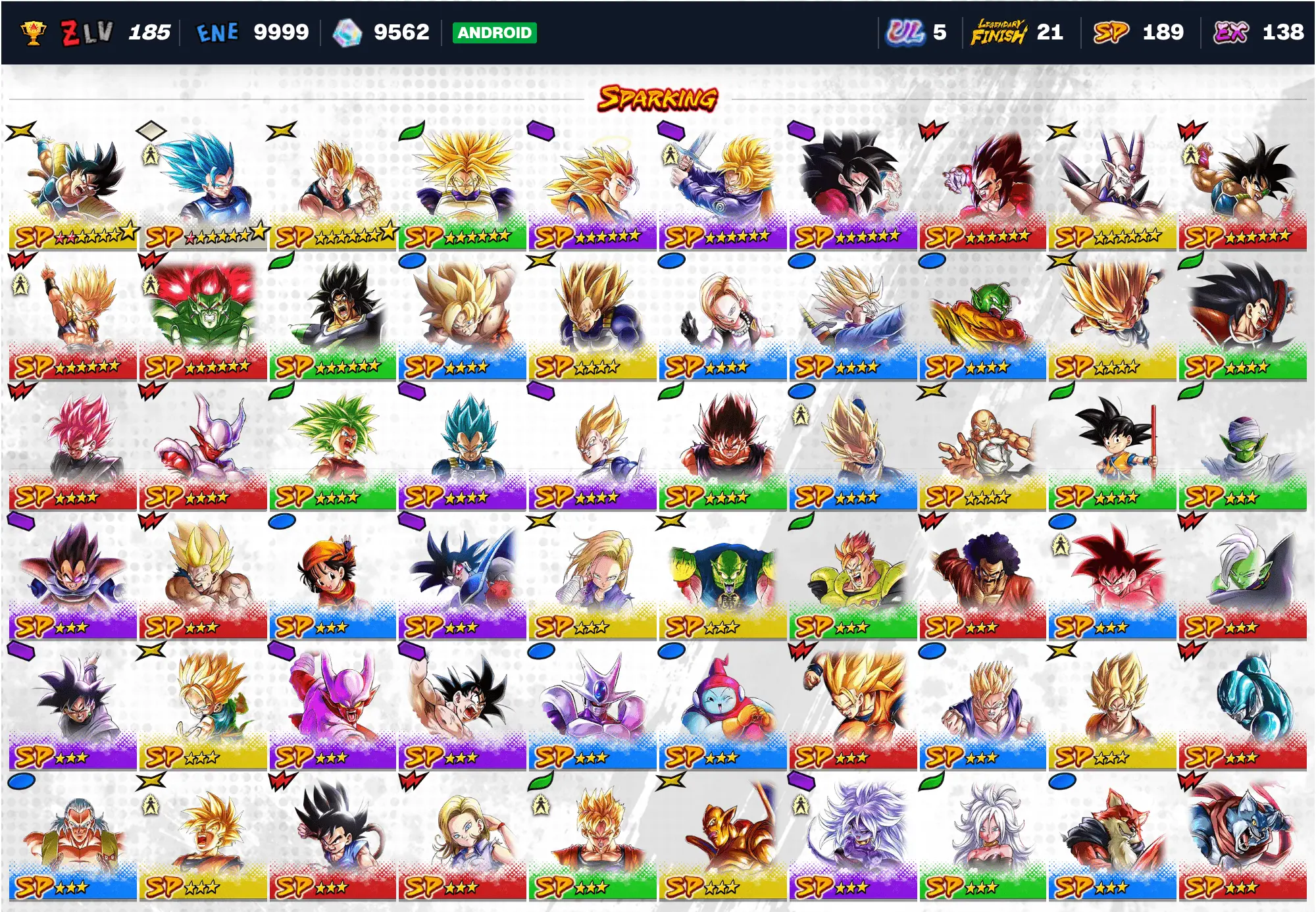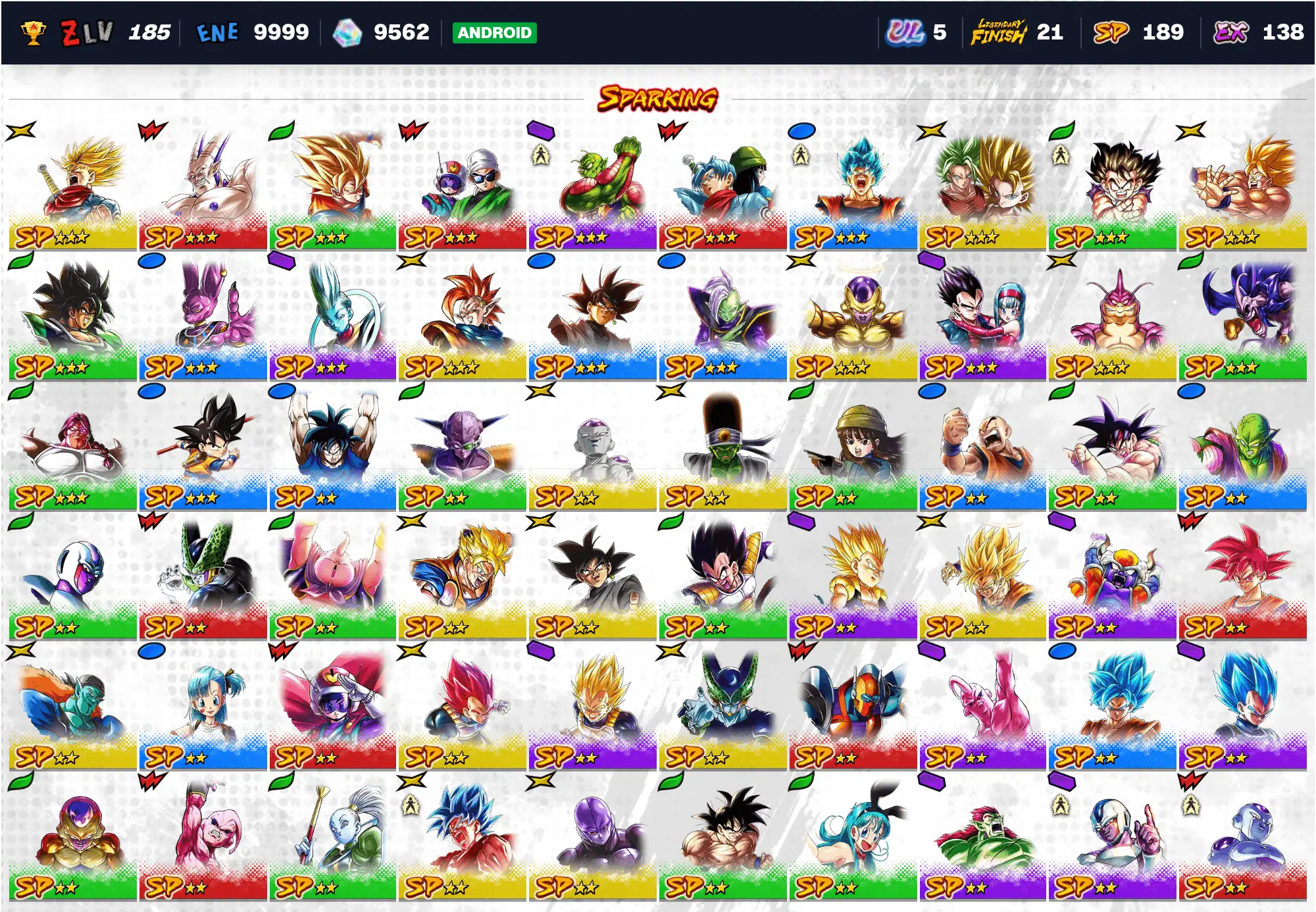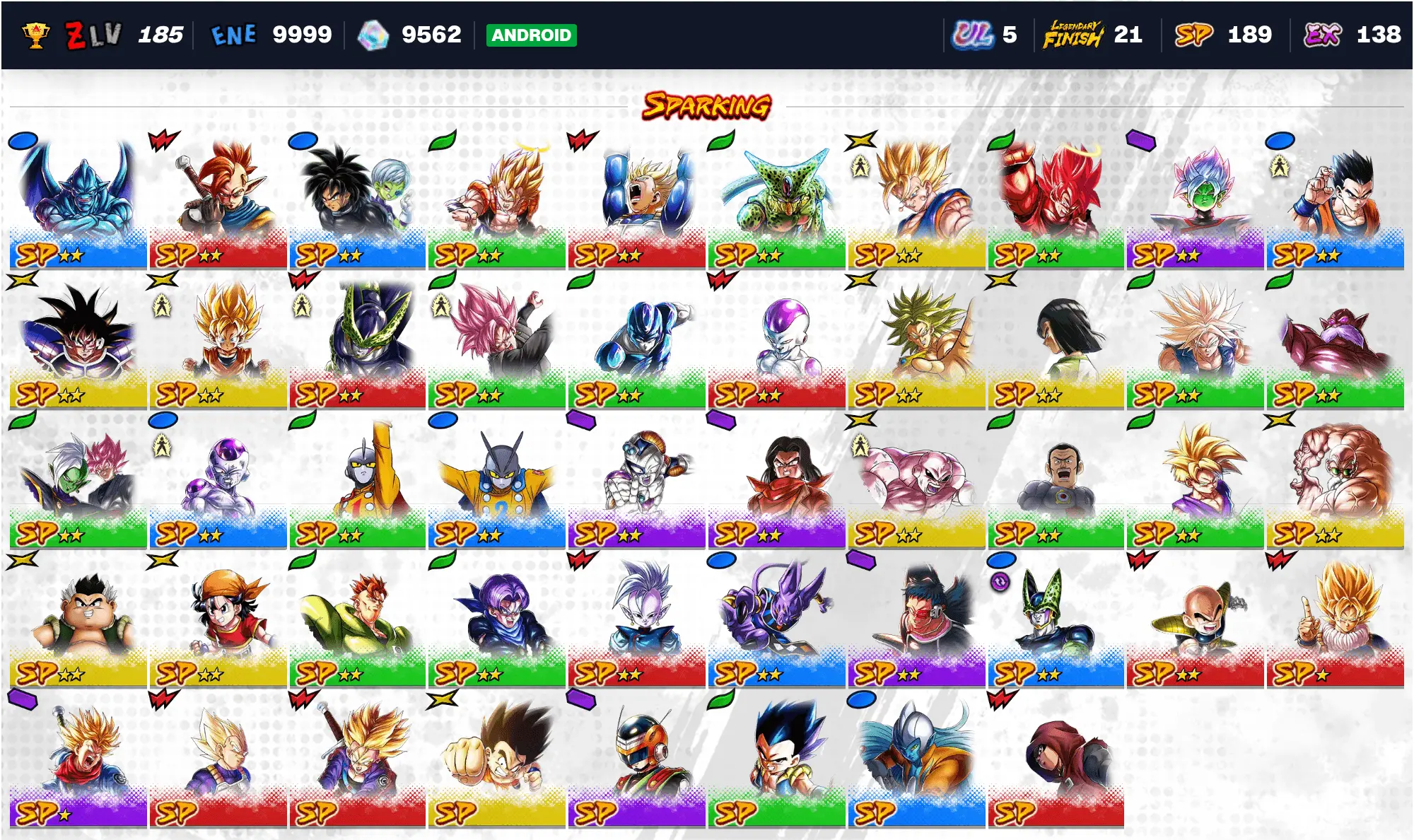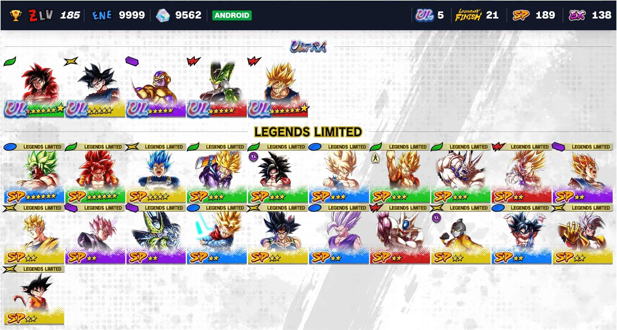 🔥 UL 5 Perfect Cell | UL 8 Super Full Power Saiyan 4 Goku 💎 9702 Chrono Crystals ⭐ 19 LF | 184 SP ⚡ Android DB Legends Account 🎮 DB-A72643