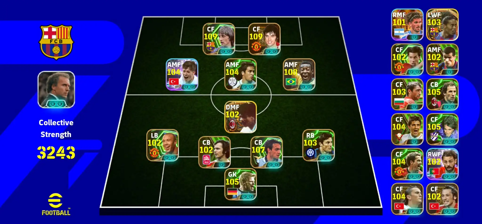 3243+ Strength🎀ANDROID+IOS🎀109 GEORGE BEST🎀109 CRUIF🎀108 PELE🎀107 NESTA🎀104 ARDA GULLER🎀RIVALDO,RONALDINHO,NISTERLOY,RIJKARD🎀ONLY KONAMI LINKED🎀