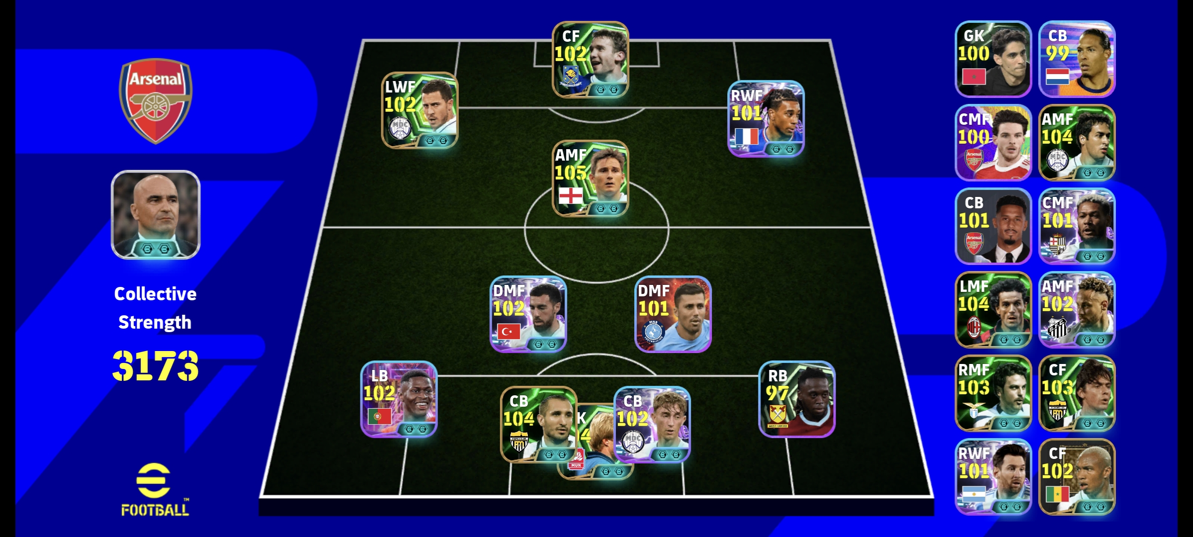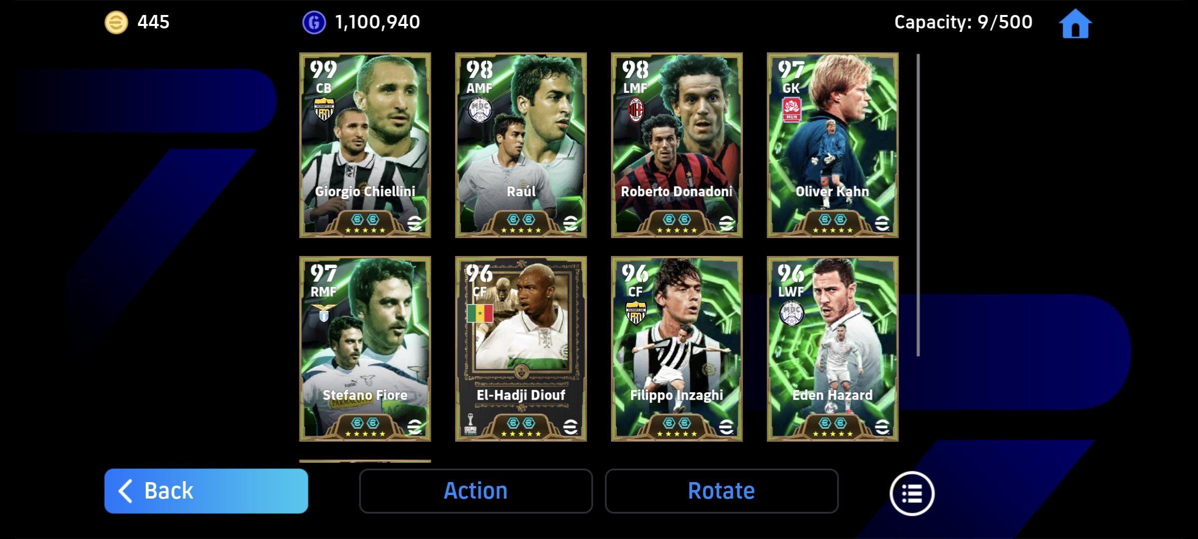 Lampard, chiellini, Inzagi, donadoni, Hazard, nuno | 3170 team straight | 2 double booster manager | 9 epic cards | 8 Highlights- show time cards | 59 Highlights cards