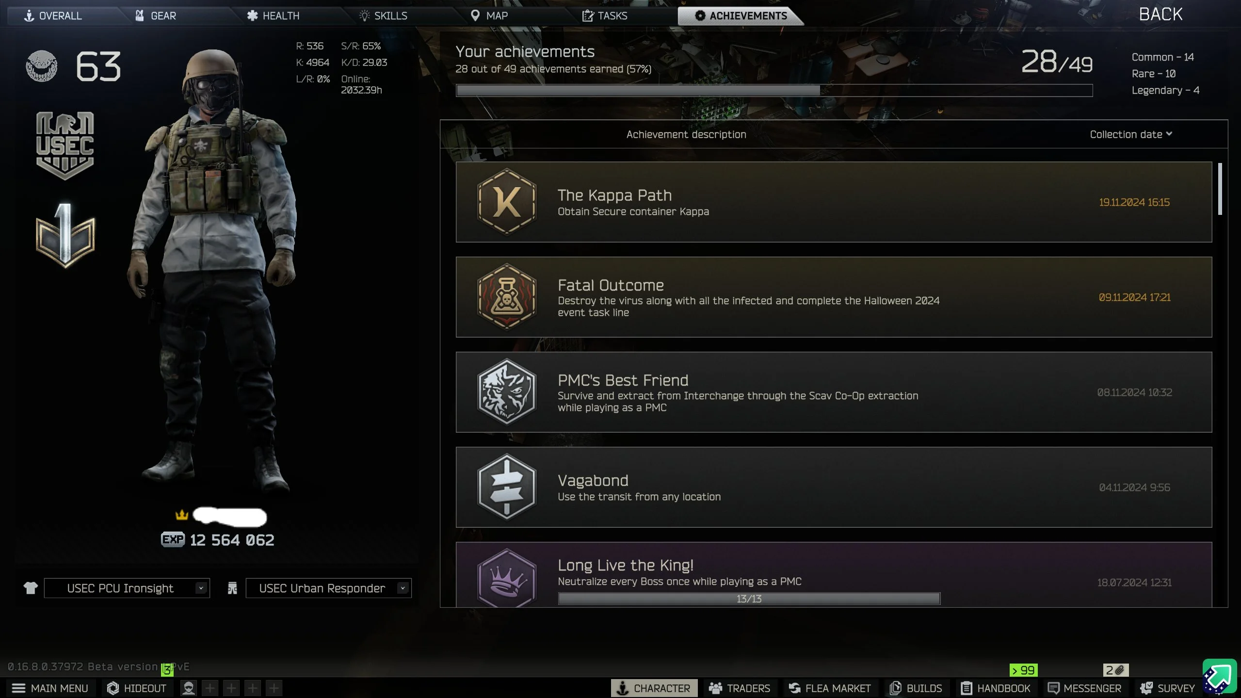 PvE Account | Level 63 + Kappa + 120M Cash + Max Hideout(#S46519636f)