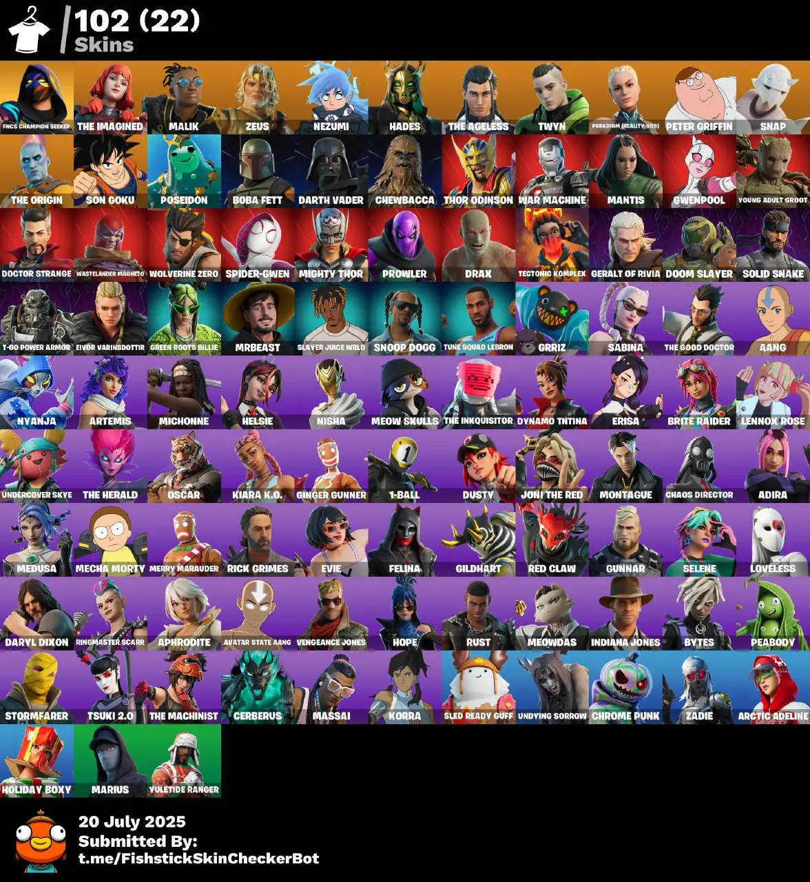 ⚡ 102 Skins [PC/PSN/XBOX] 🥇 FNCS Champion Seeker 🌌 The Imagined ⚔️ Malik 🐉 Nezumi 💀 Hades 👑 The Ageless 🌙 Twyn 🚀 Paradigm 🧿 FTN134