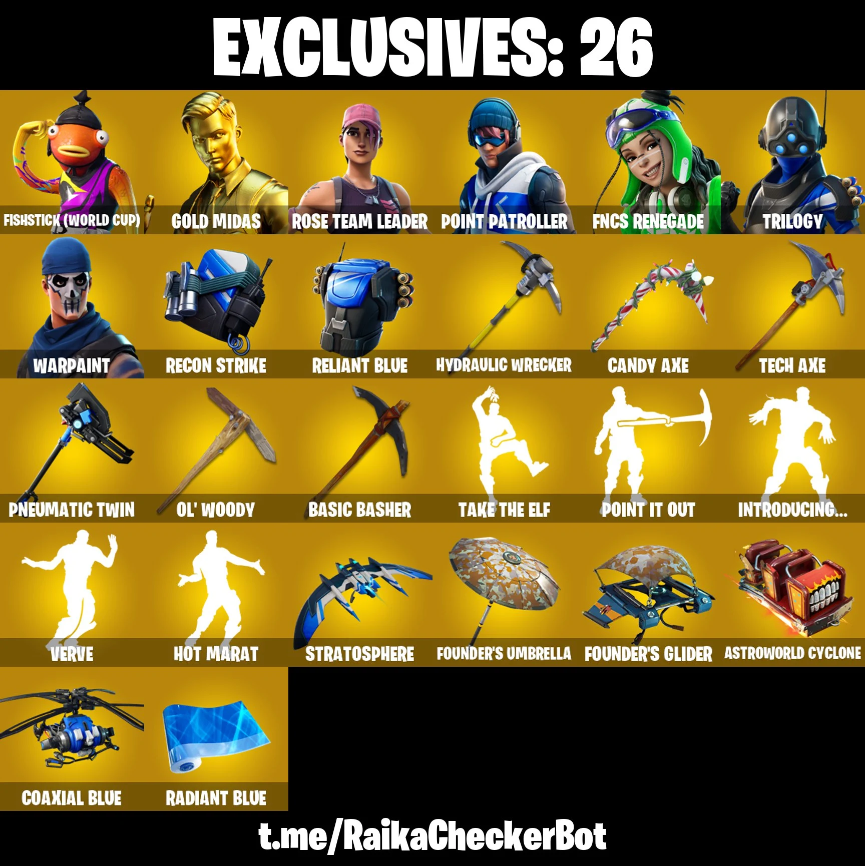 124 SKINS | OG STW | Fishstick (World Cup) | FNCS Renegade | Galaxia | Blaze | Domino | Ghoul Trooper | Breakpoint | Crystal | [PC/PSN/XBOX] | 950 VB