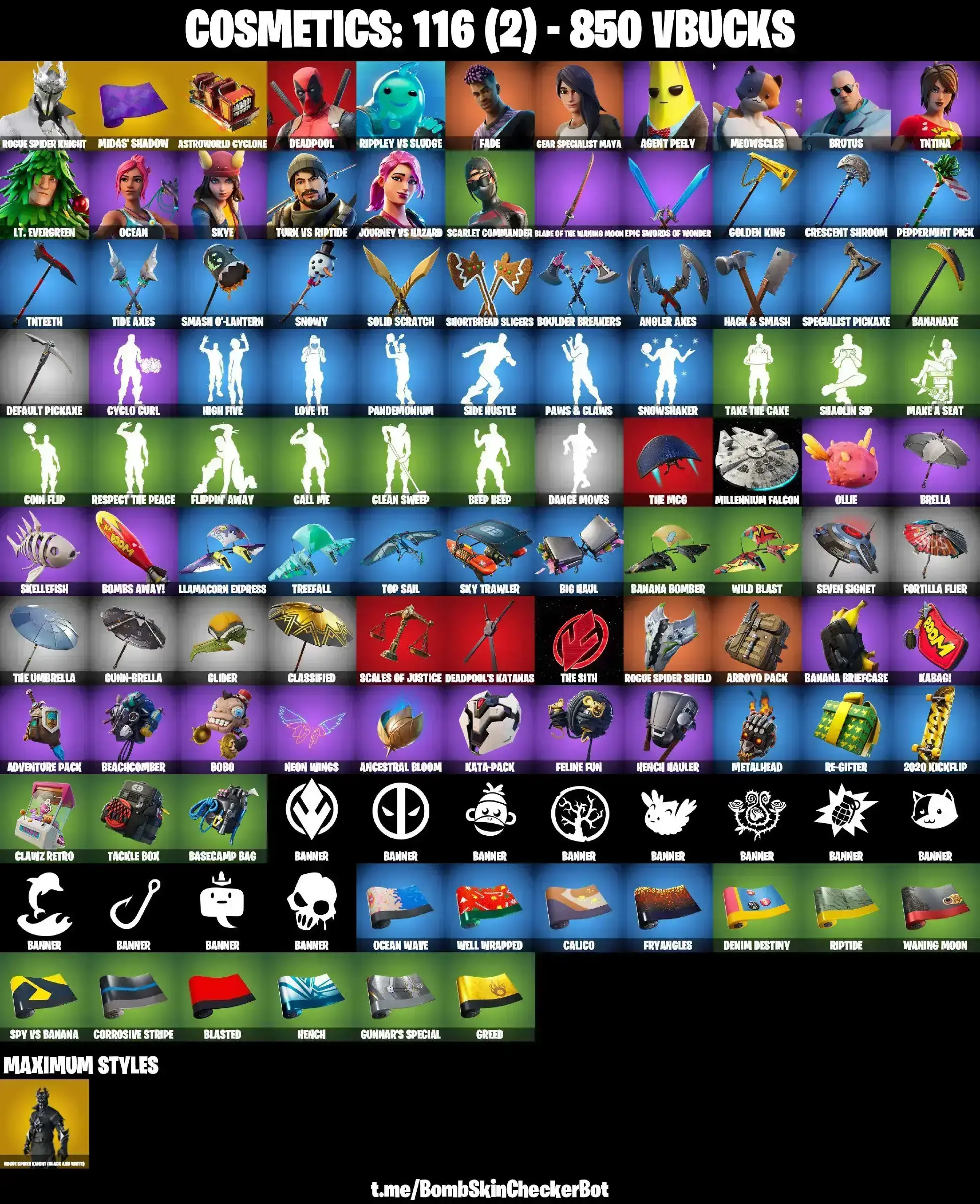 15 SKINS | ROGUE SPIDER KNIGHT MAX | MAYA | AGENT PEELY | SKYE | SCARLET COMMANDER | MEOWSCLES | ASTROWORLD CYCLONE | PEPPERMINT PICK | CAN PLAY ON PSN,XBOX,PC,NINTENDO,MOBILE | 850 VBUCKS | FULL EMAIL ACCESS