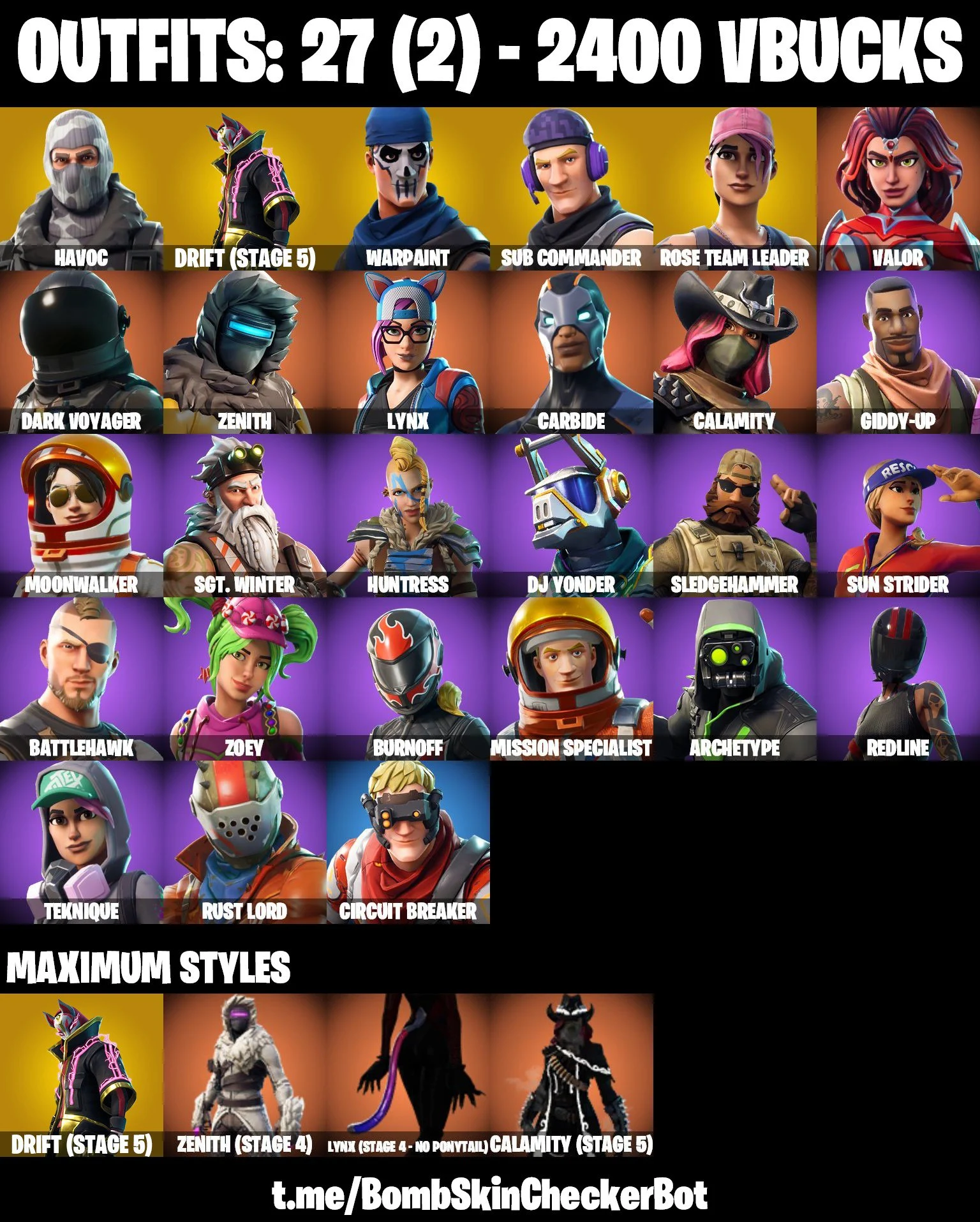 🔮27 Skins🔮 OG STW💎Take The L💎Laugh It Up💎Havoc💎Take The Elf💎Sub Commander💎Rust Bucket💎Orange Justice💎Snowflake💎DJ Yonde