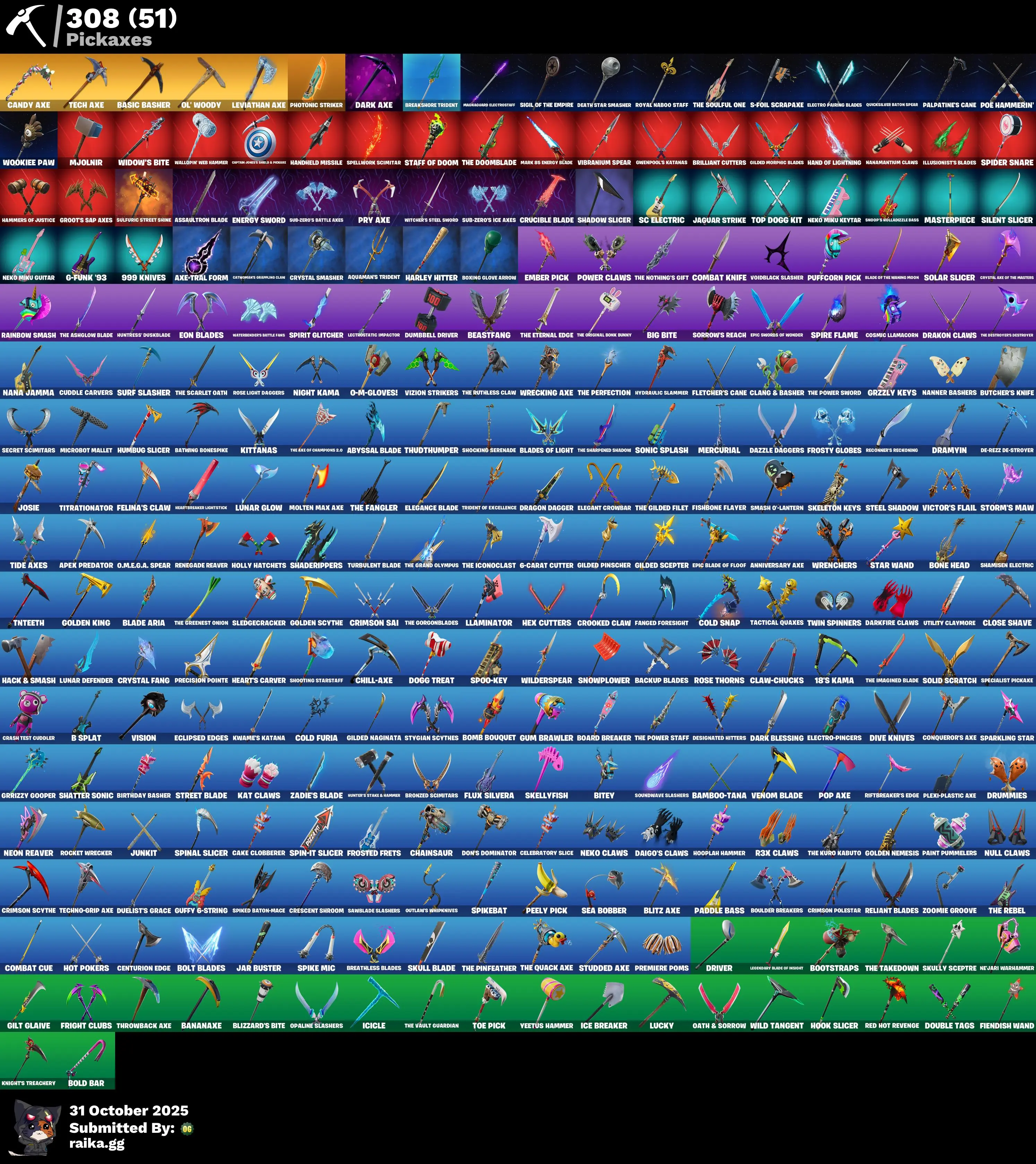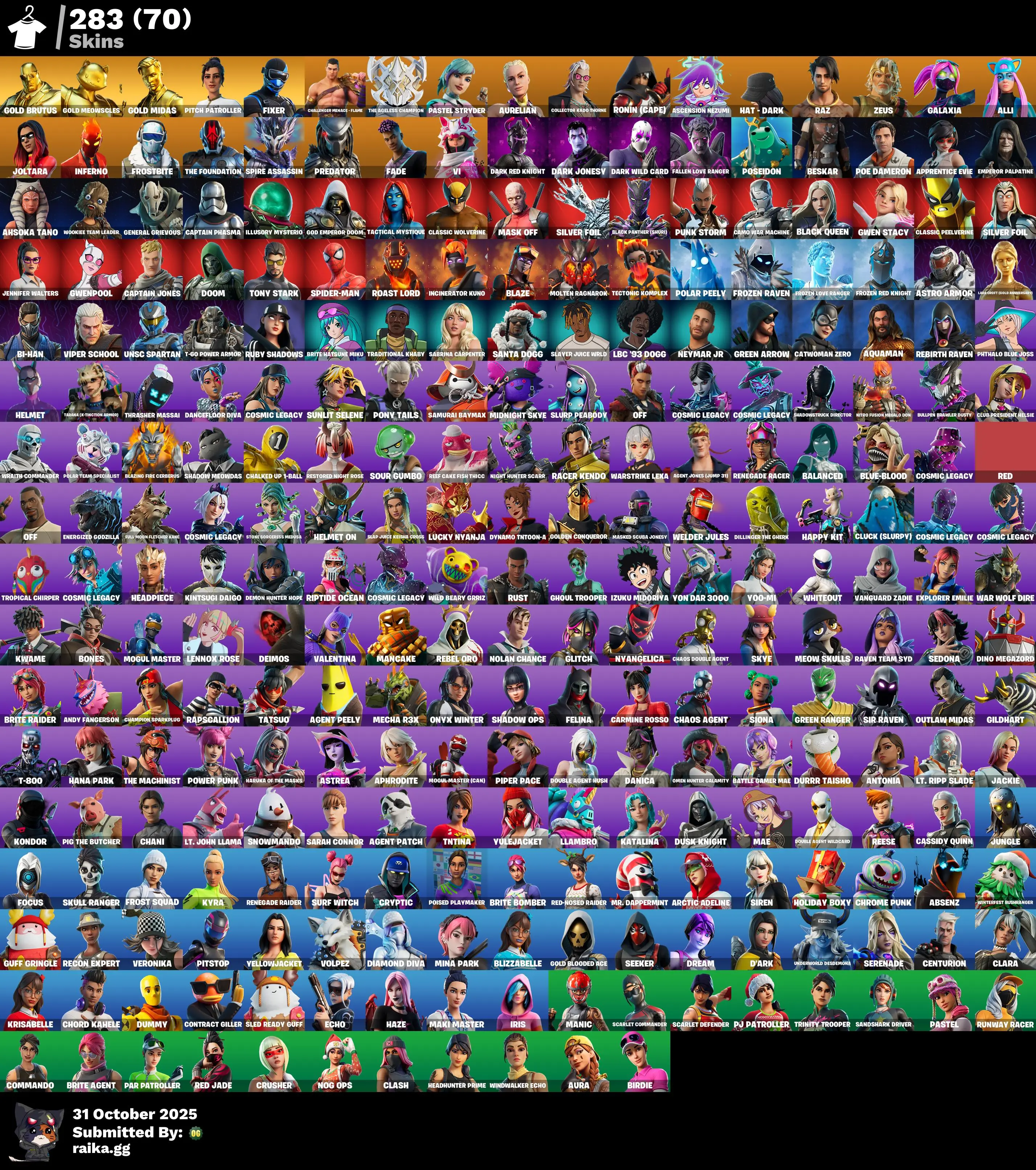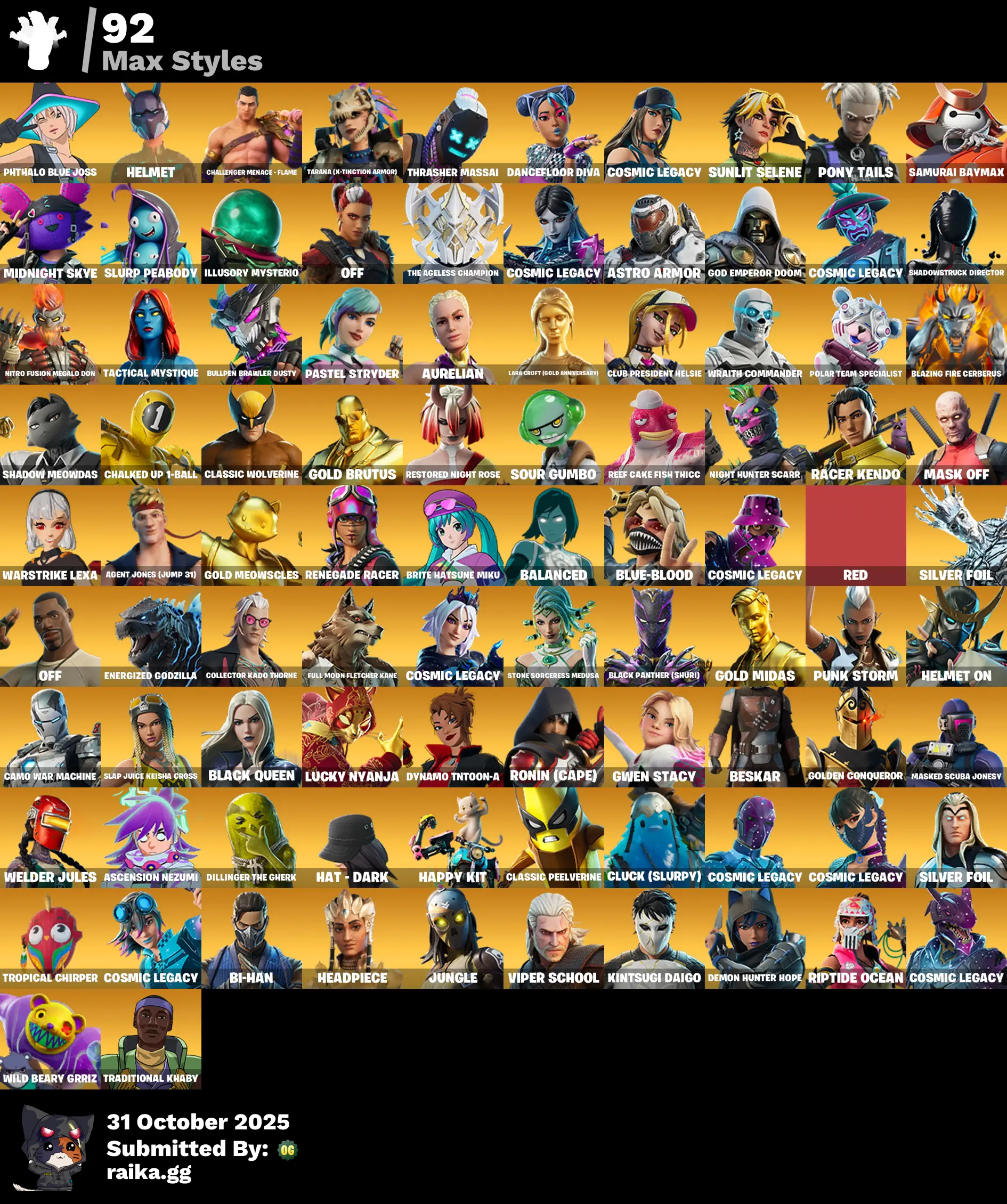 283 skins | Laugh It Up🎃Candy Axe🎃Gold Midas🎃Take The Elf🎃Spider-Man🎃Spider-Gwen🎃Lara Croft🎃Jules🎃General Grievous🎃Sentinel🎃Skellyfish🎃Brite Moves🎃Sasquatchin'🎃Driver🎃Show 'Em Off🎃Front Page Pose🎃Rose Thorns🎃Firework🎃Twyn D5284