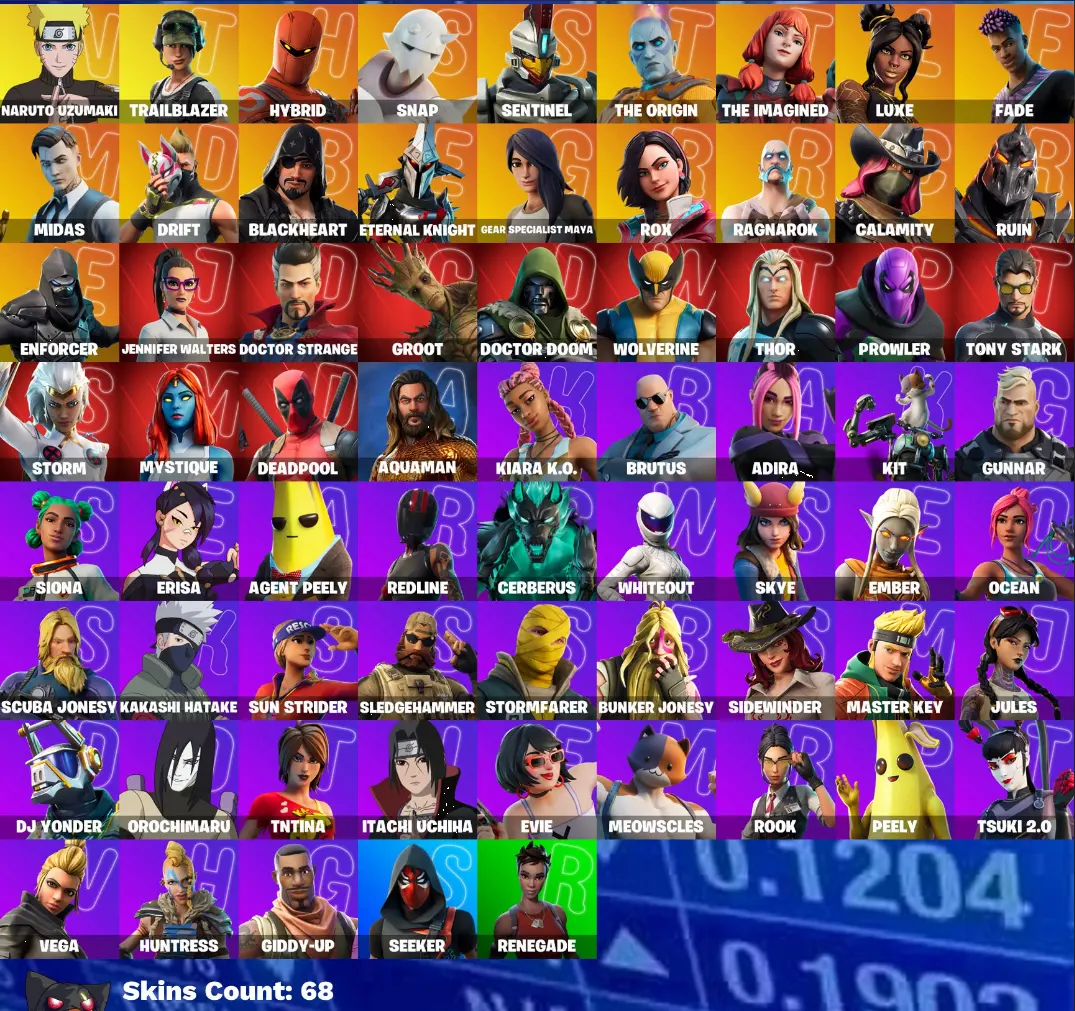 🍁 68 Skins | Naruto Uzumaki • Midas • Drift • The Origin • Marvel Set | 10 Exclusives | Lv.1076 🍂