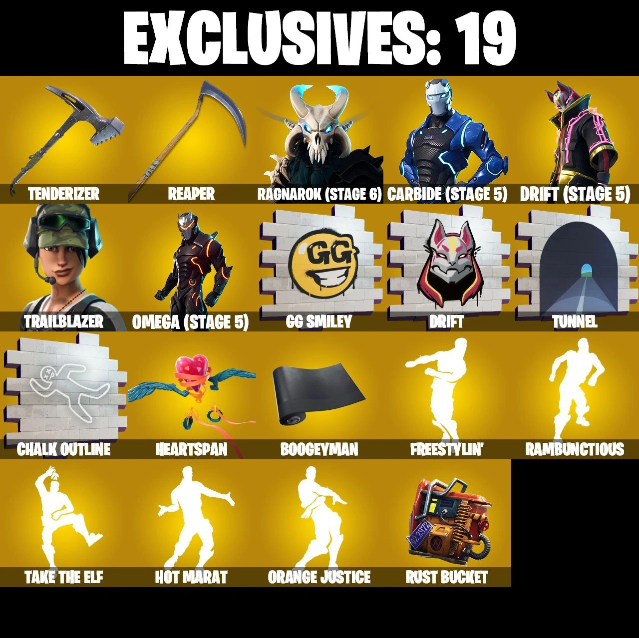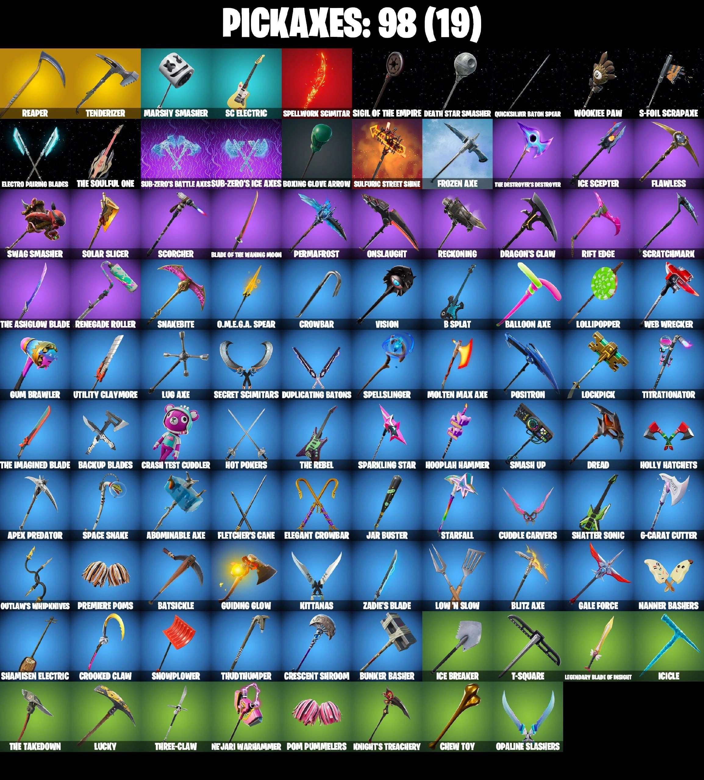 81 SKINS | OMEGA STAGE 5 | TRAILBLAZER | FREESTYLIN | JABBA SWITCHWAY | MANDALORIAN | SUB-ZERO MK3 | OUTLAW MIDAS | ORANGE JUSTICE | RAMBUNCTIOUS | ONESIE MAX | BULLSEYE | ROOK | ZOEY | REAPER | ICE BREAKER | TAKE THE ELF | CAN PL